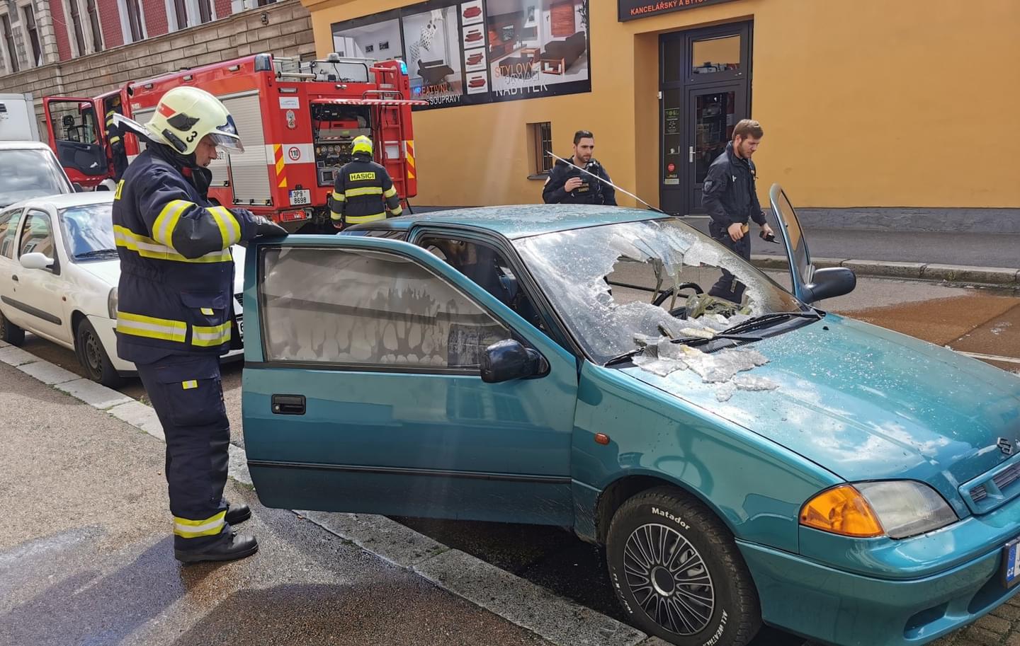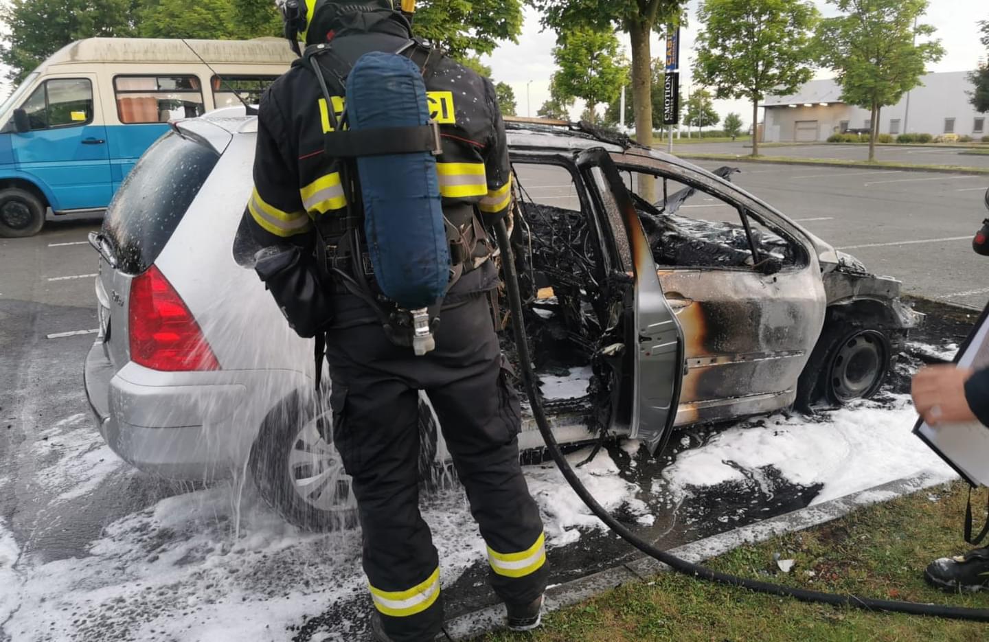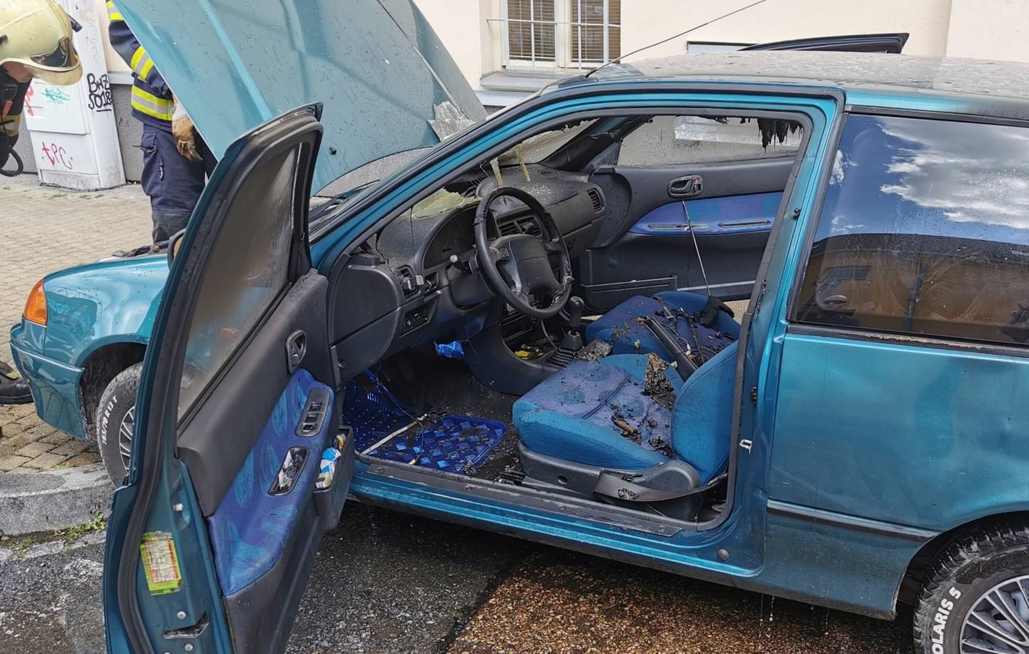 Hasiči požár zlikvidovali krátce po svém příjezdu, ale auto je samozřejmě už nenávratně zničené. Mladý majitel vozu se krátce po uhašení dostavil na místo.