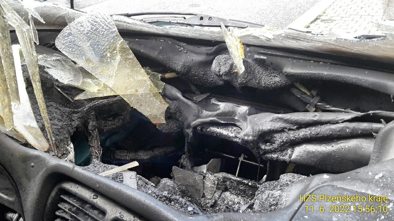 Oheň v tomto případě nevznikl v motorovém prostoru, jak bývá nejčastěji, ale v kabině vozu a šířil se od přístrojové desky.