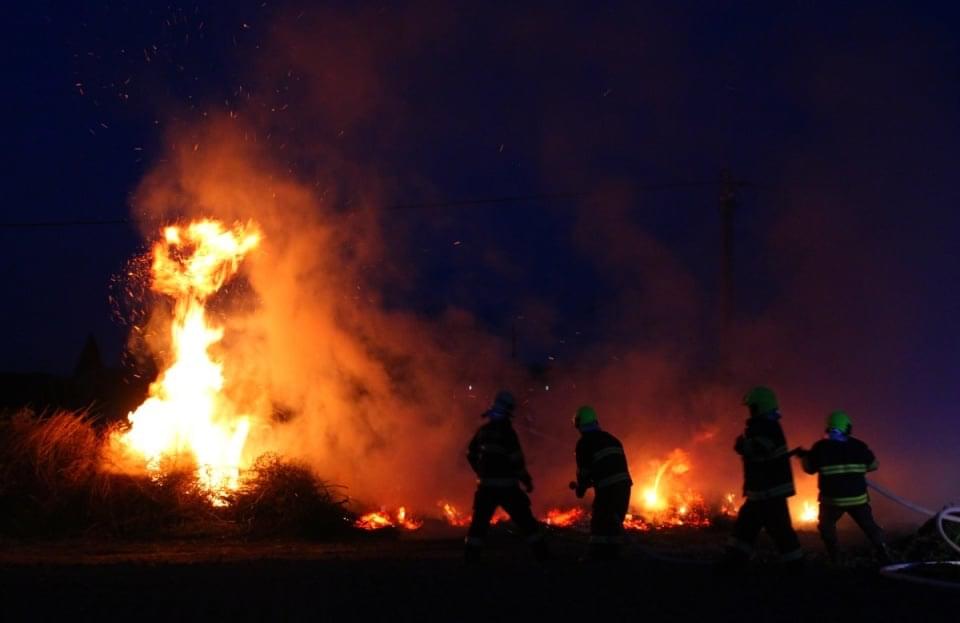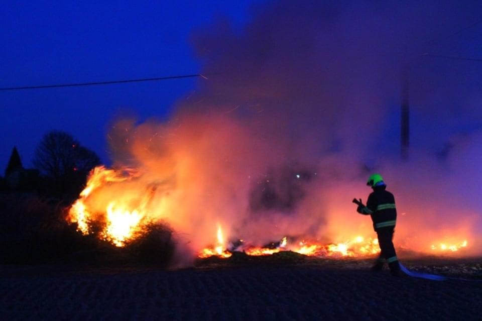 Klid není ani v Srbicích nedaleko Staňkova, kde zase hoří stoh.