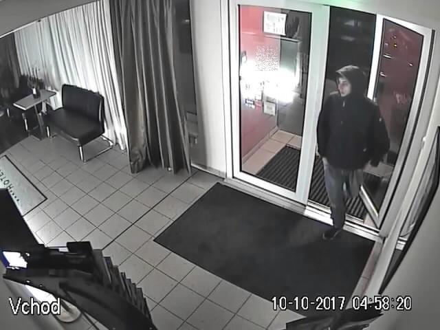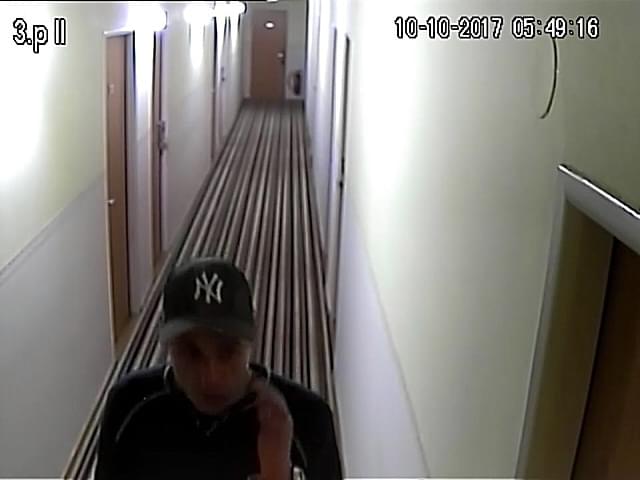 Následně bylo zjištěno, že si dne 8. října 2017 neznámý pachatel objednal přes internet pobyt v pražském hotelu. Za pobyt zaplatil jednou z platebních karet ze ztracené peněženky. Zde se poté na dva dny ubytoval a při ubytování předložil neplatný občanský průkaz, který byl hlášený jako odcizený.