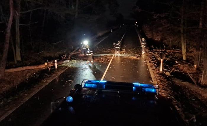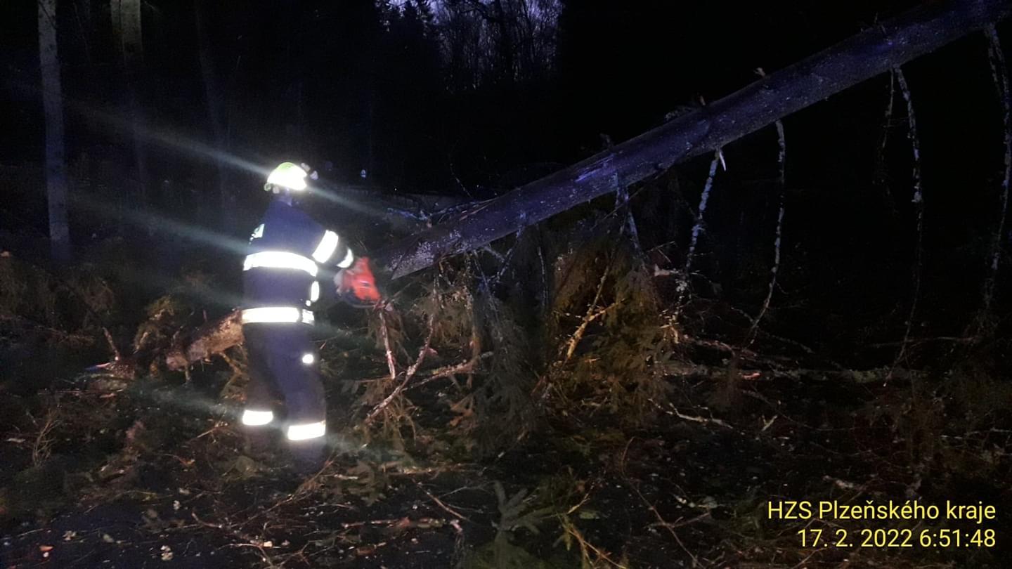 V prakticky celých západních Čechách řádí silný vítr, od půlnoci do sedmi hodin ráno měli hasiči již více než sto výjezdů na padlé stromy, z čehož bylo pět případů pádu stromu do elektrického vedení. Varování před vichřicí/orkánem Dudley dorazilo všem jednotkám hasičů již včera večer.
