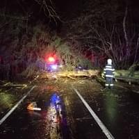 Hasiči jsou již na pokraji sil, bohužel došlo i k havárii jejich velitelského vozu. Ten mířil k zásahu a narazil do stromu, který spadl přímo před projíždějící vozidlo. Při nehodě došlo ke zranění hasičů ve voze a až do vyšetření nehody tak nemohou hasiči spadlý strom odstranit.