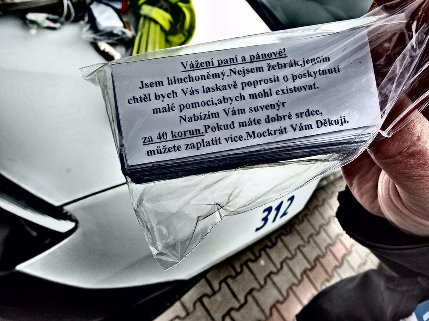 Za finanční příspěvek nabízeli suvenýr ve formě reflexního pásku na ruku nebo reflexní samolepky. Podle našich informací se muži se stejnou nabídkou jen za poslední týden vyskytovali například na Klatovské třídě na Borech a na křižovatce u OC Plaza. Samozřejmě se prokázalo, že muži hluchoněmí nejsou.