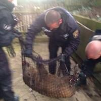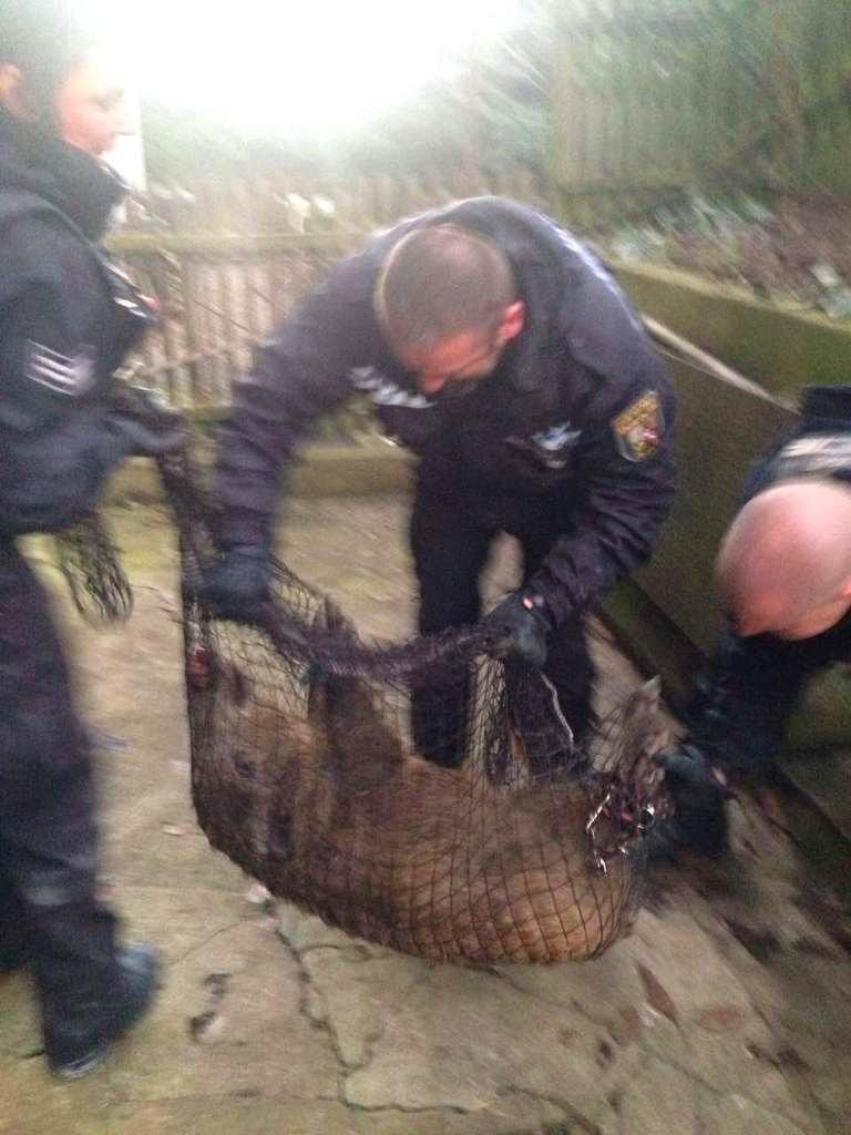 Na zahradě rodinného domu nebylo o dramatické chvíle nouze, zejména když se prase rozeběhlo proti strážníkům. Nakonec se strážníci s celou situací dobře popasovali. Jeden z nich prase doslova zalehl vlastním tělem, ostatní mu pak pomohli. Zafixovat se mu museli přední a zadní běhy a umístěn musel být do odchytové sítě. Viditelně nezraněné zvíře pak bylo vypuštěno do volné přírody v lese poblíž Zábělé.