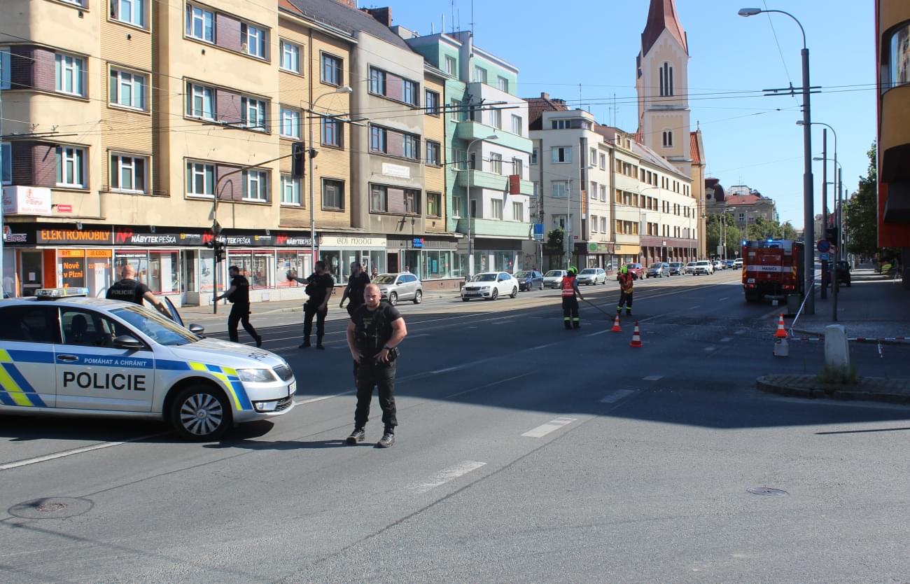 Policisté museli uzavřít jednu z nejrušnějších křižovatek v Plzni a doprava kolabovala