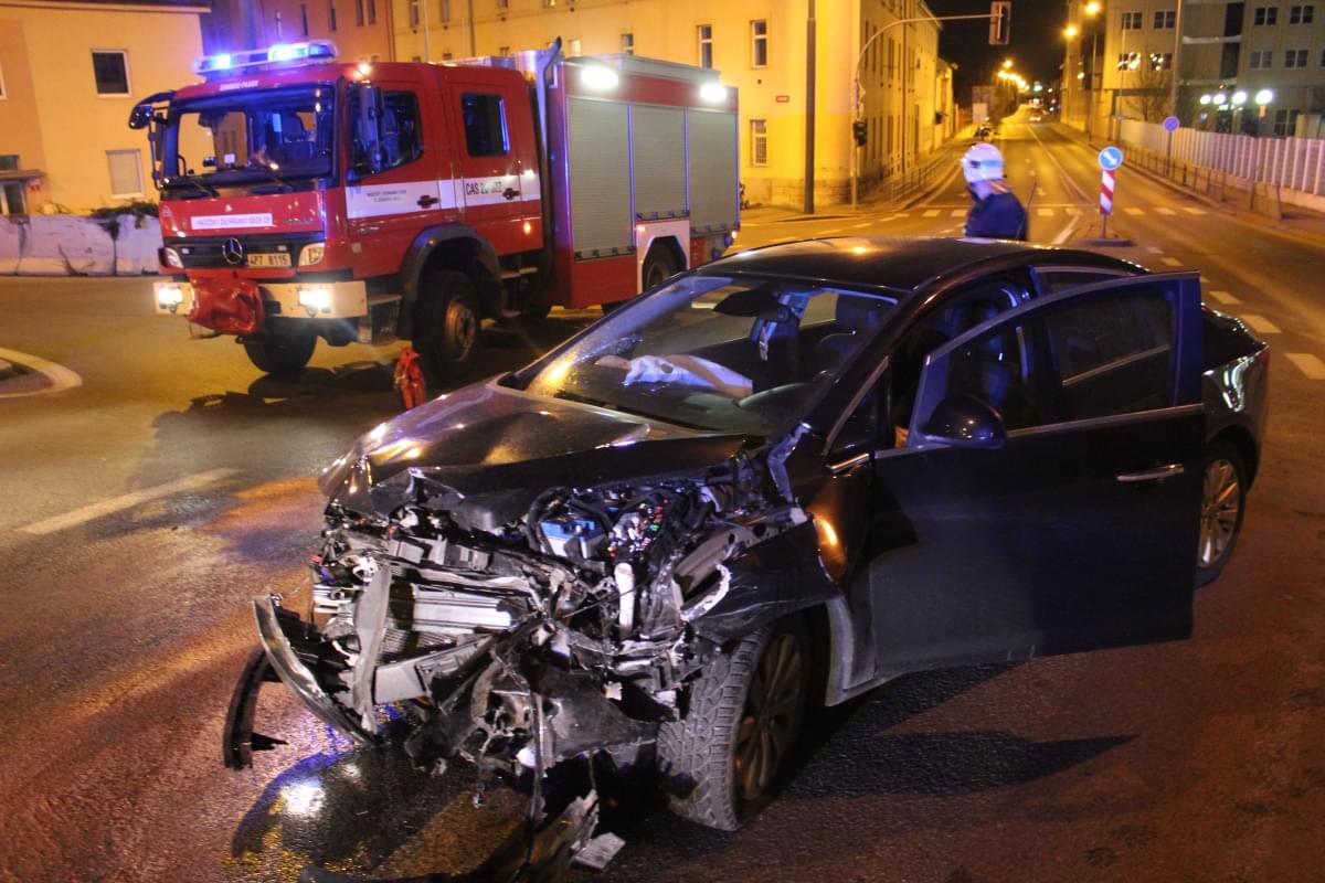 Dnes deset minut před osmou hodinou večer došlo ke střetu vozů Opel Astra a Audi na křižovatce Lobezské a Železniční ulice v Plzni.