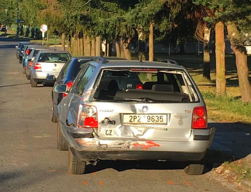 V sobotu večer po šesté hodině došlo v Dukelské ulici v Přešticích k těžko pochopitelné nehodě. "Je to místní ..., se zákazem řízení, co tady dělal po městě bordel s autem, například s oblibou gumoval po parkovištích a podobně," uvedl muž, který nás na nehodu upozornil.