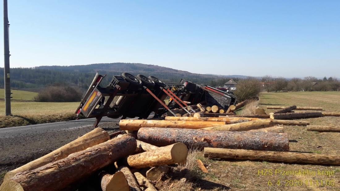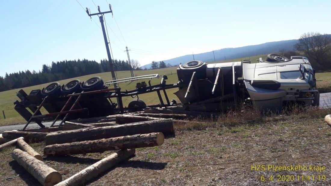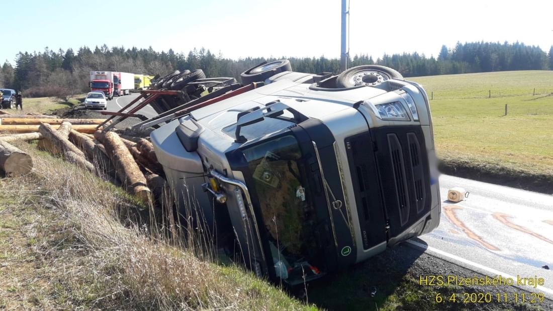 Jen o pár minut později před Borovnem ve směru od Míšova havaroval nákladní automobil převážející dřevo, kdy se celá souprava převrátila na bok a náklad se vysypal mimo silnici.