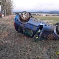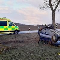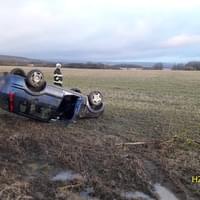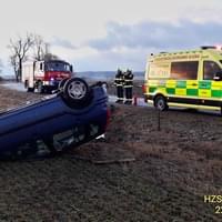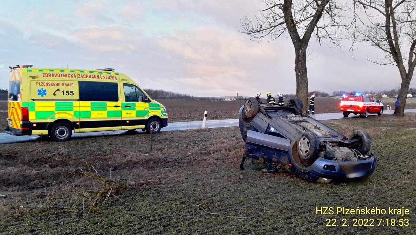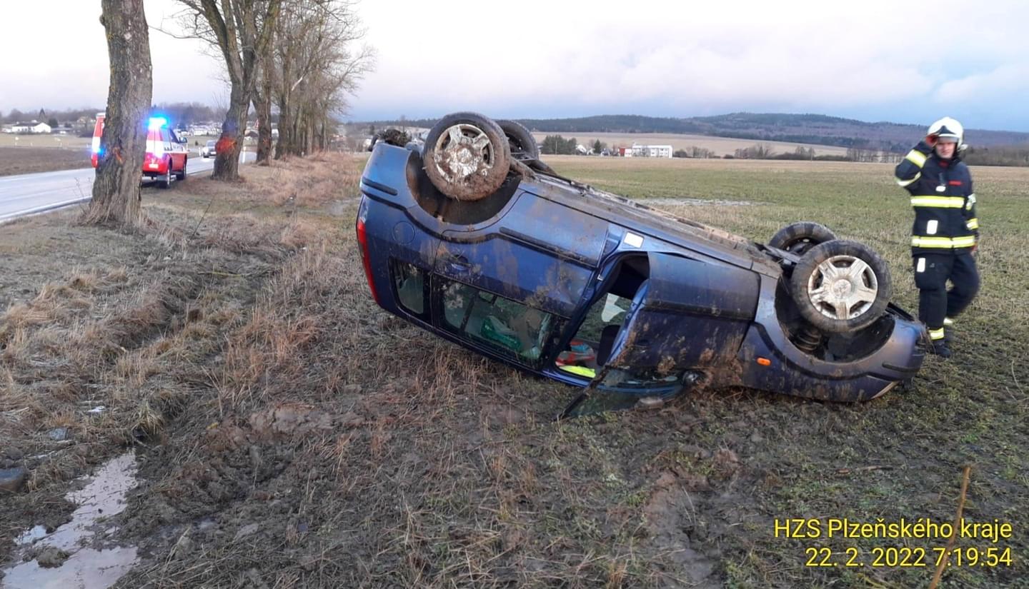 Dnes po sedmé hodině ráno došlo na namrzlé silnici mezi Tachovem a Ctiboří k havárii osobního vozu mimo silnici, kde zůstal převrácený na střeše.