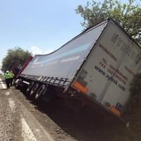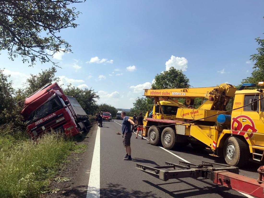 Na místo míří těžká technika, bude nutné přeložit náklad a kamion vyprostit.