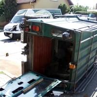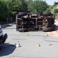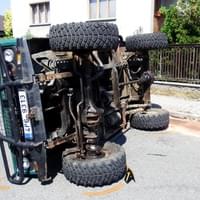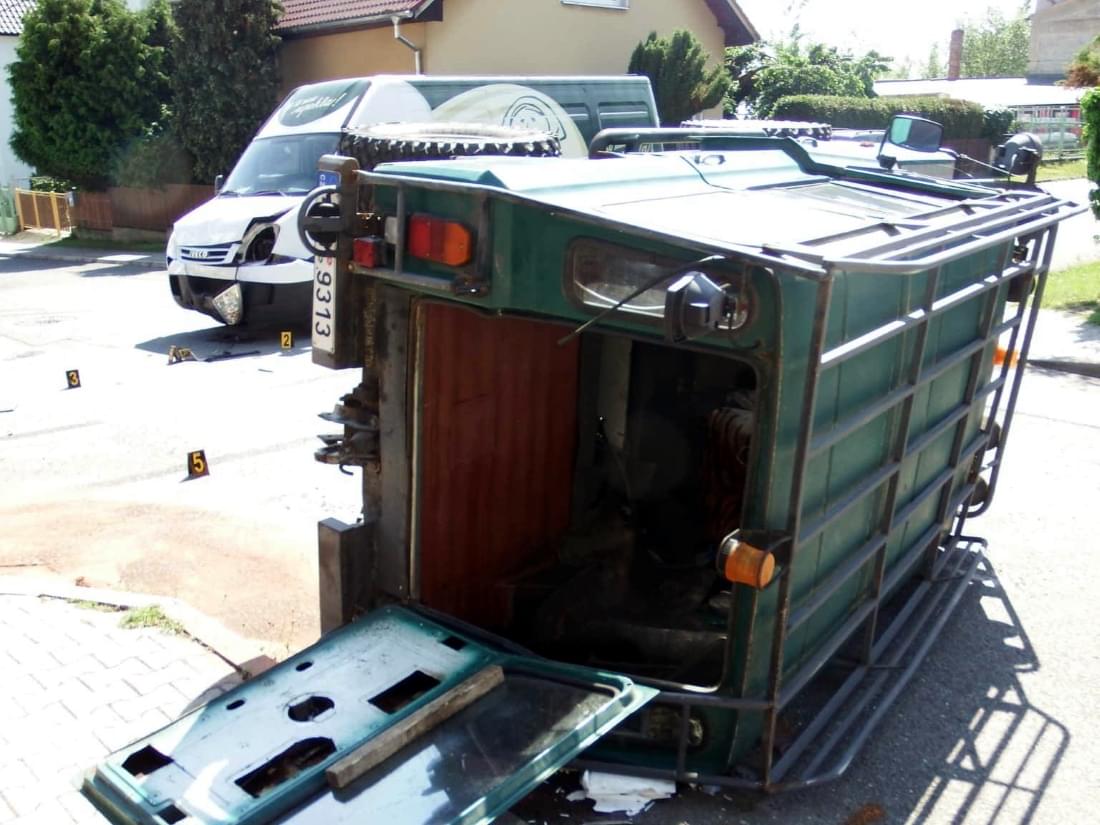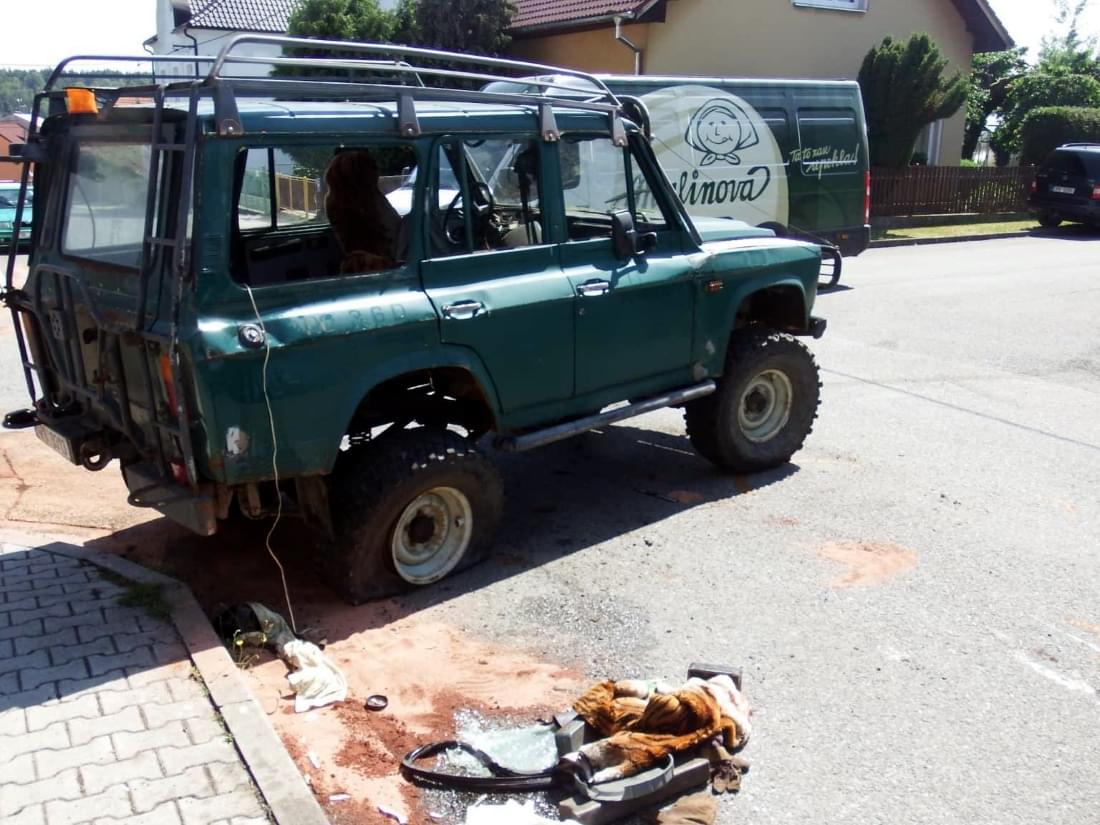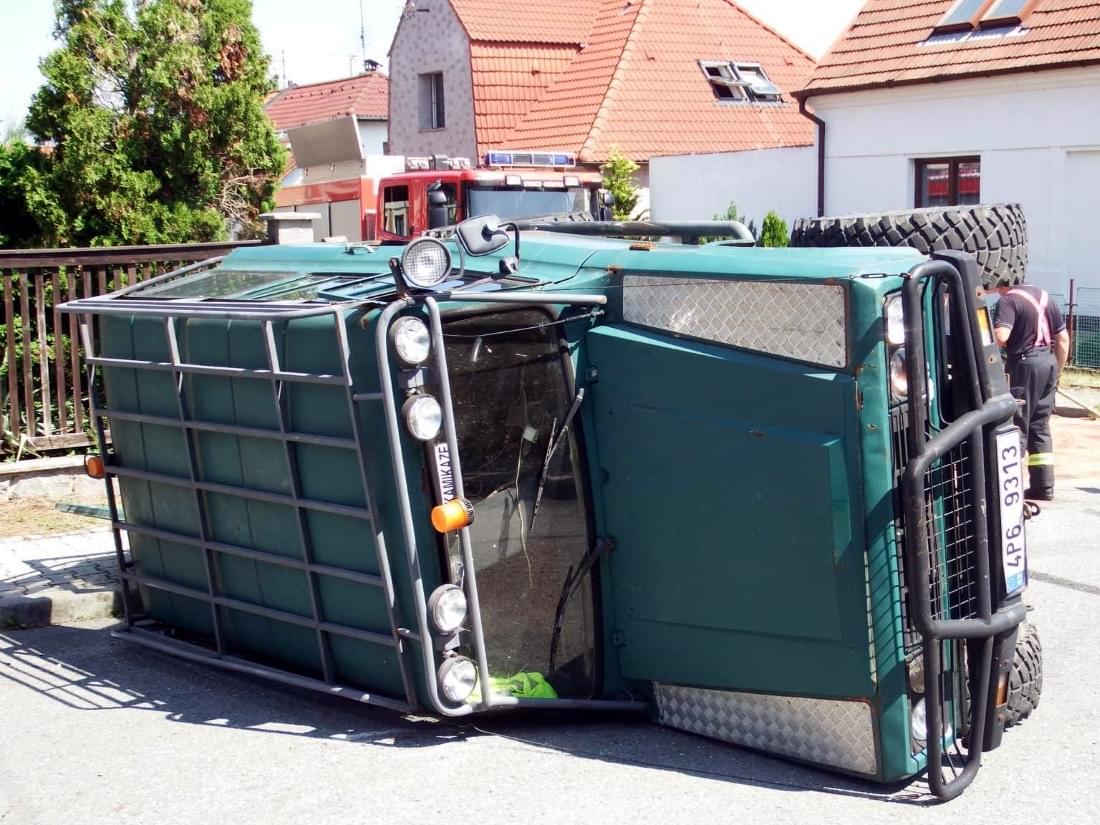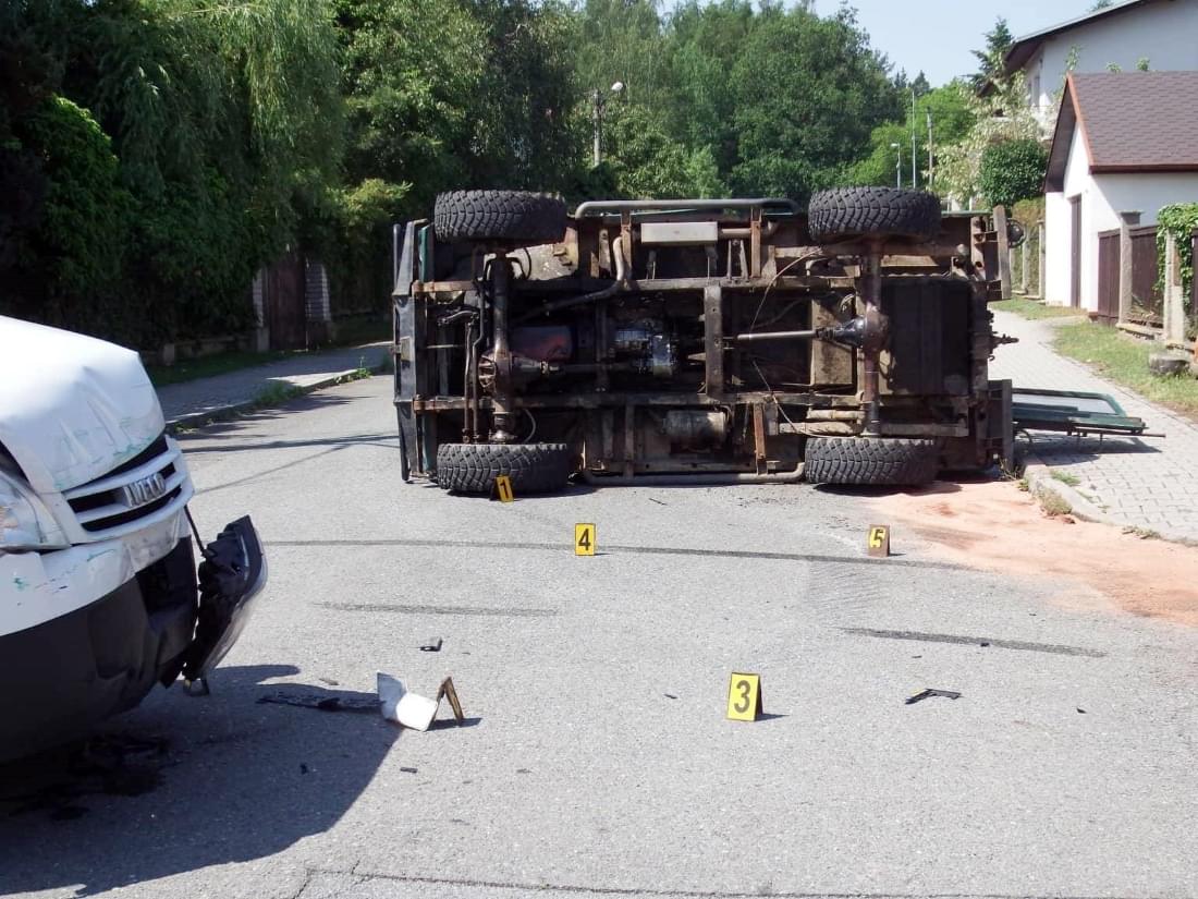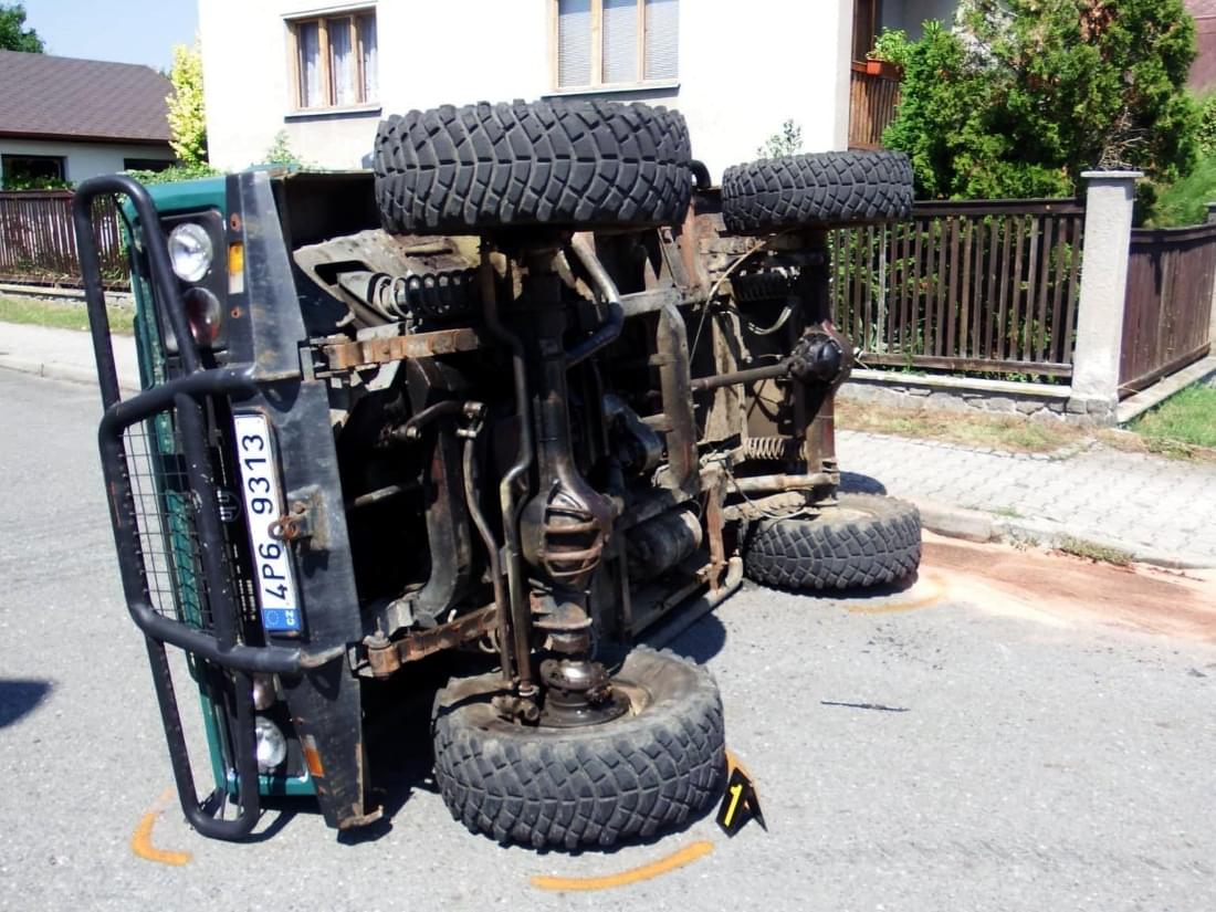 Řidič dodávky pekárny Malinová podle všeho nedal přednost zprava přijíždějícímu offroadu a narazil do jeho boku. Následkem nárazu se Aro převrátilo na bok.