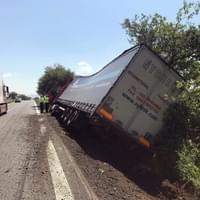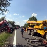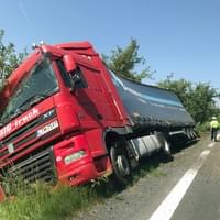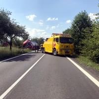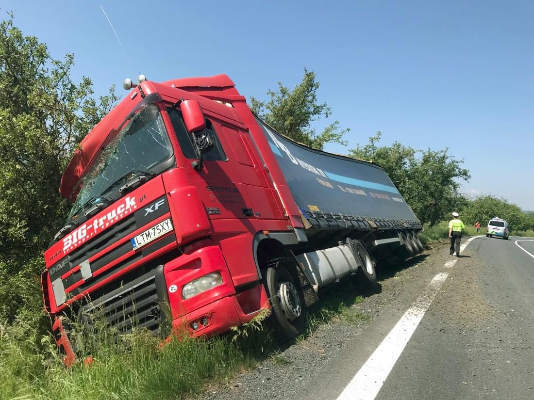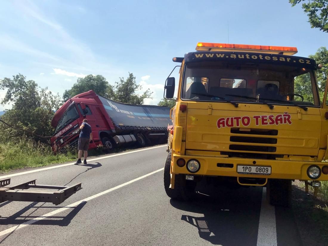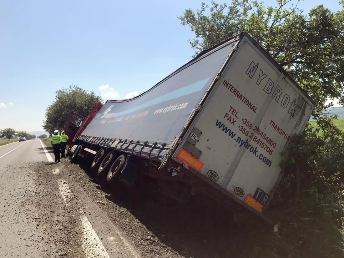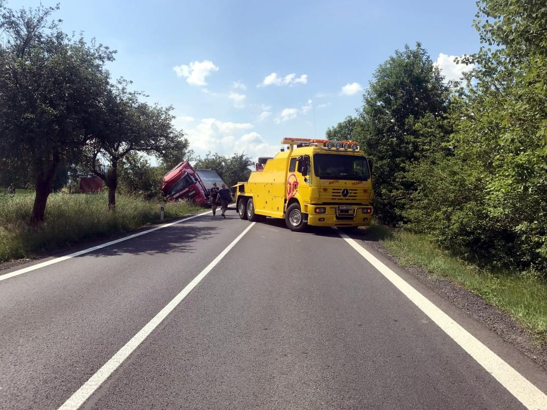 Přibližně o půl hodiny později došlo mezi Domažlicemi a Draženovem k havárii polského kamionu do příkopu, ke které vyráželi policisté i hasiči.