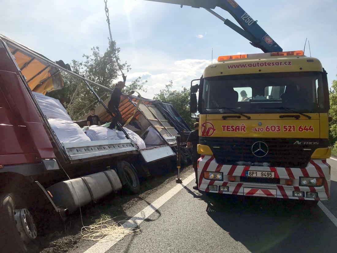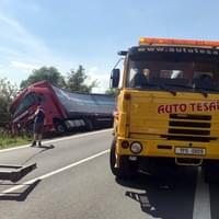 Tato havárie se podle informací z místa obešla bez zranění, ale komplikuje dopravu, jeden jízdní pruh byl uzavřen.