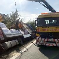Kolem sedmé hodiny večer byl náklad více než dvaceti tun oblečení přeložen, kamion vyproštěn a silnice zprůjezdněna.