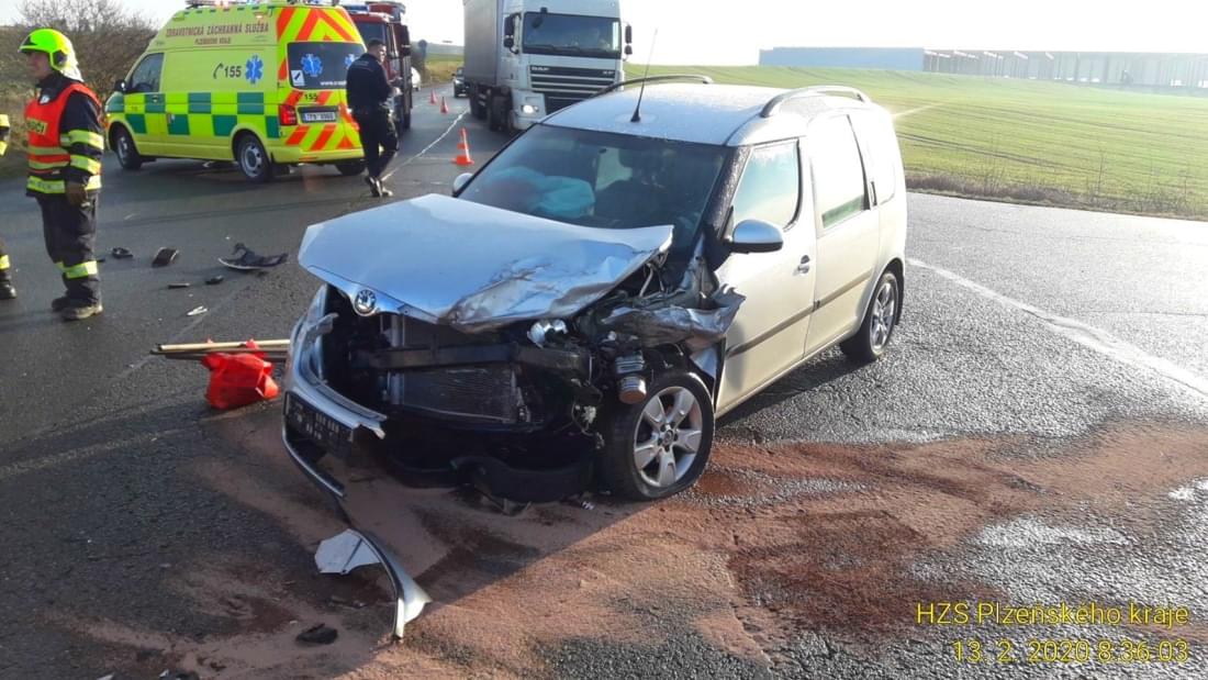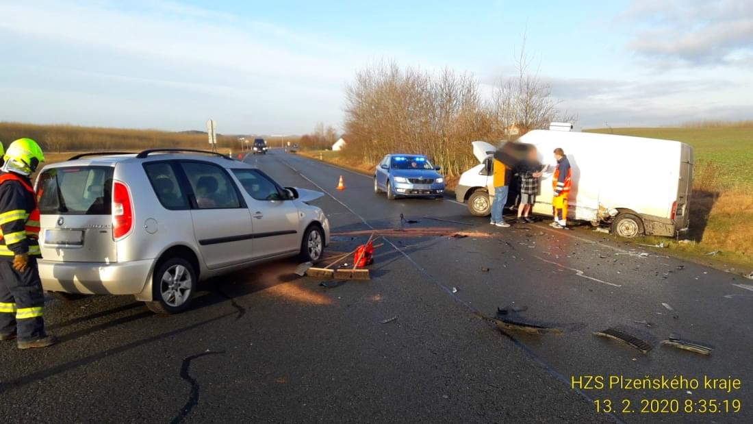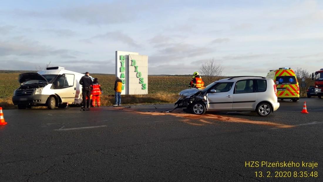 Jen o několik minut později vyjížděly všechny záchranné složky na silnici mezi Nýřany a Blatnice, kde u odbočky na Dioss došlo ke střetu dodávky a osobního automobilu.