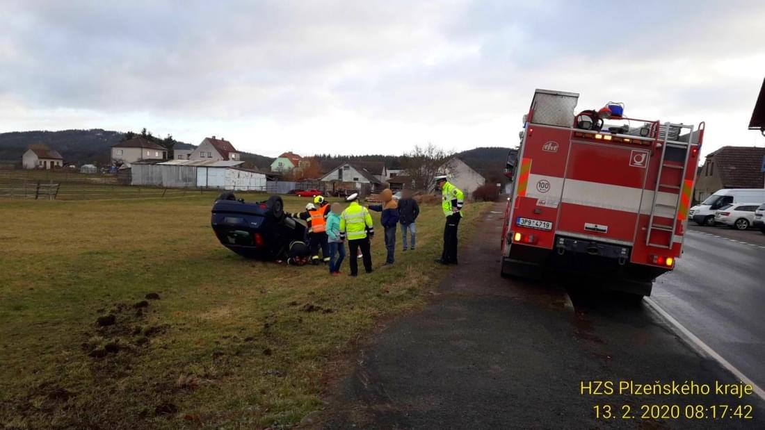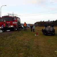 Dnes těsně po osmé hodině ráno došlo před Svojkovicemi ve směru od Borku k havárii osobního vozu, při které se auto přetočilo přes střechu a skončilo mimo vozovku.