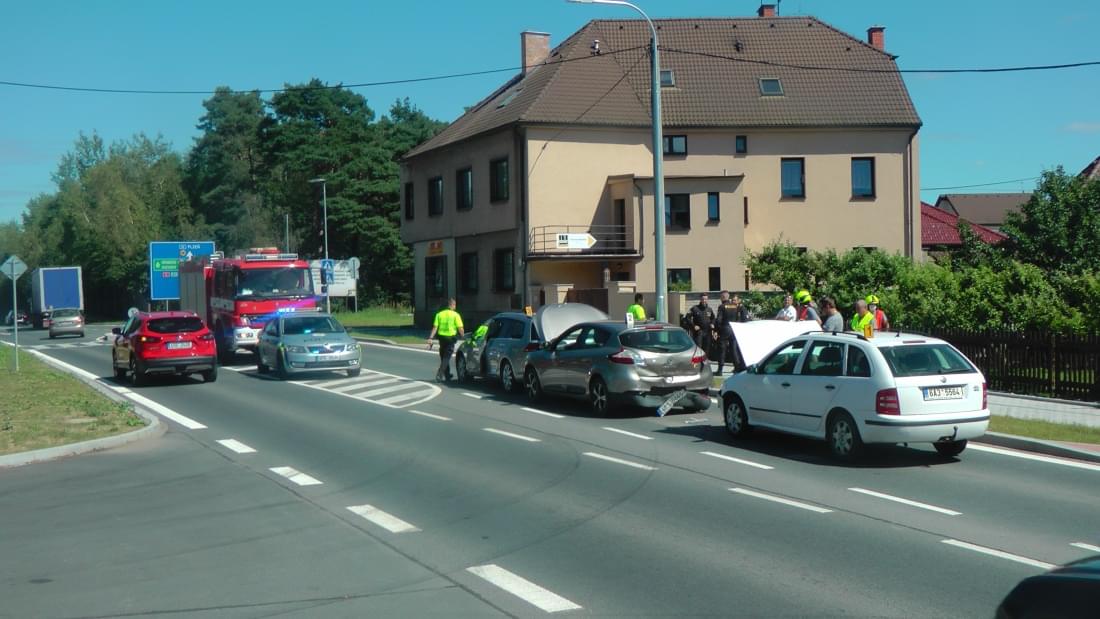Jen o patnáct minut později vyjížděly všechny záchranné složky do Sulkova kde na hlavním tahu z Domažlic ve směru na Plzeň došlo k zadnímu střetu tří osobních vozů.