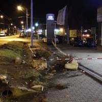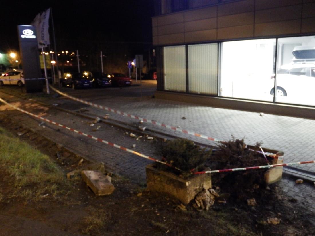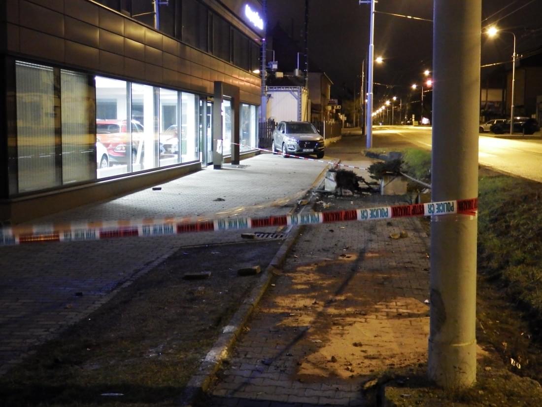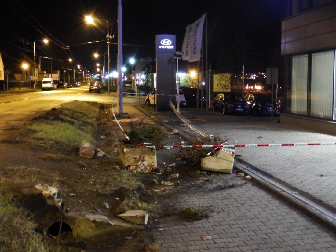 Řidič dle všeho ve vysoké rychlosti na zcela rovné silnici nezvládl řízení, vyjel vpravo mimo vozovku, kde nejprve přeletěl trávník, narazil do propustě, pak roztříštil betonový květináč, převrátil se a nakonec již převrácené vozidlo narazilo do betonového sloupu.