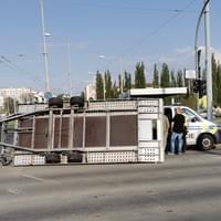 K nehodě došlo tak, že se mercedesu při rozjezdu na semaforu odpojilo celé závěsné zařízení, autopřepravník se samovolně rozjel, odbočil šikmo přes Cvokařskou ulici, zasáhl středový ostrůvek, kde zlomil dopravní značku a poté se i s kulometným čtyřčetem převrátil na bok.