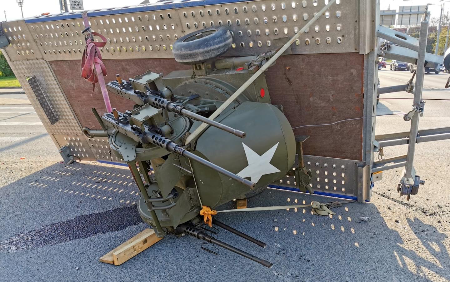 Jednalo se o civilní vozidlo Mercedes, které táhlo autopřepravník, na kterém bylo umístěno americké válečné čtyřče M55 Machine Gun Trailer Mount osazené těžkými kulomet M2A1 Browning.