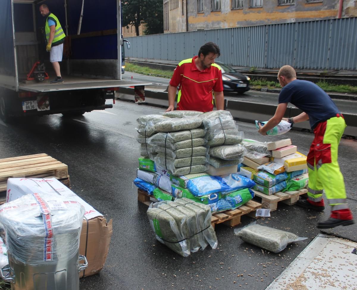 V Jízdecké právě probíhá vykládka převráceného kamionu PPL specializovanou firmou. Kamion je zcela plný tisíců balíků a balíčků zásilek všemožných velikostí. Vykládka bude trvat zhruba do devíti hodin a pak nastoupí těžká technika firmy Car Expres, kamion bude převrácen zpět na kola a bude odtažen.