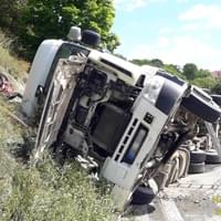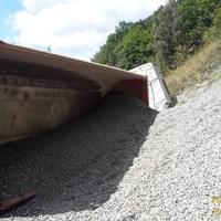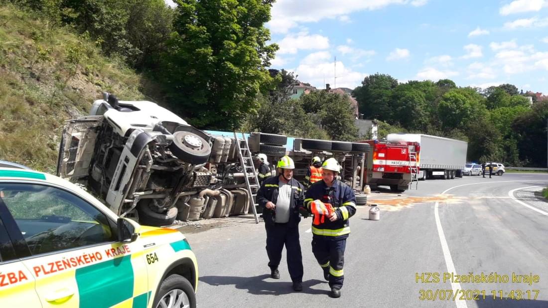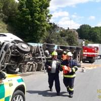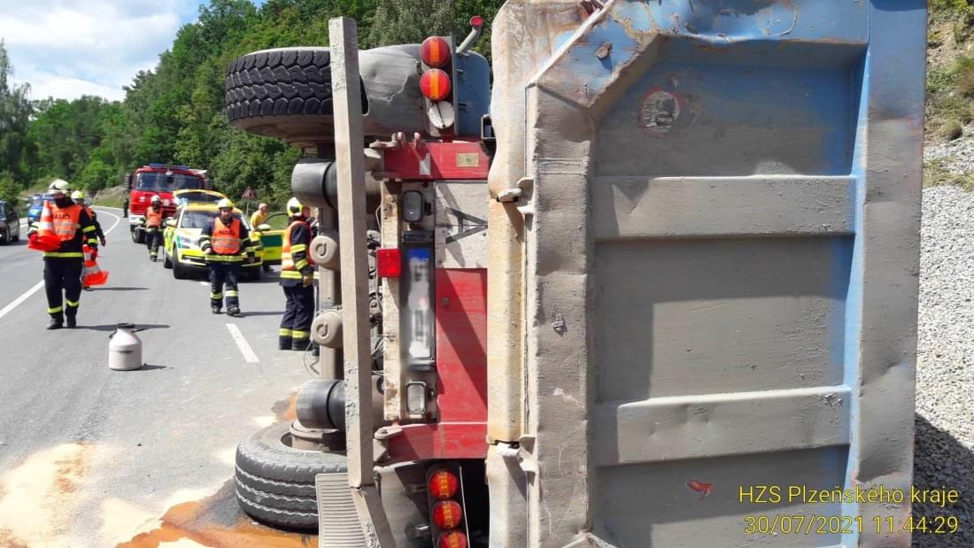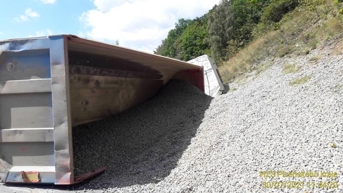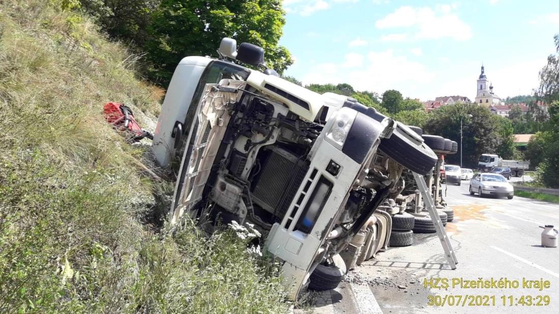 Dnes v půl dvanácté došlo v centru Stříbra v zatáčkách nedaleko čerpací stanice k havárii kamionu převážejícího kamení, který vyjel vpravo mimo vozovku a převrátil se na bok. Na místo vyjely všechny záchranné složky, hasiči krom zajištění prostoru události pomocí nastavovacích žebříků vyprostili zraněného řidiče, provedli protipožární opatření a odpojili baterii vozu.