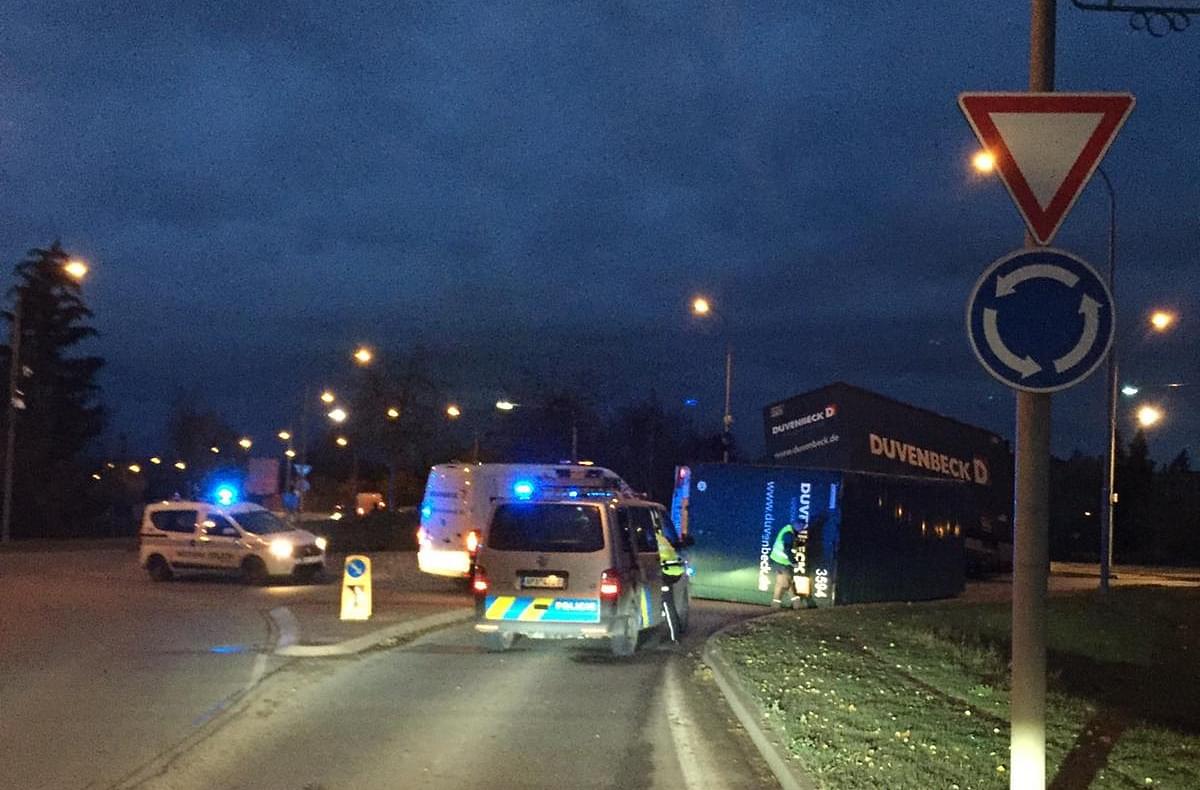 K havárii, při které se na kruhovém objezdu převrátil přívěs nákladního vozu, došlo dnes po půl páté ráno na křižovatce ulic Šťáhlavská a Boženy Němcové v Rokycanech.