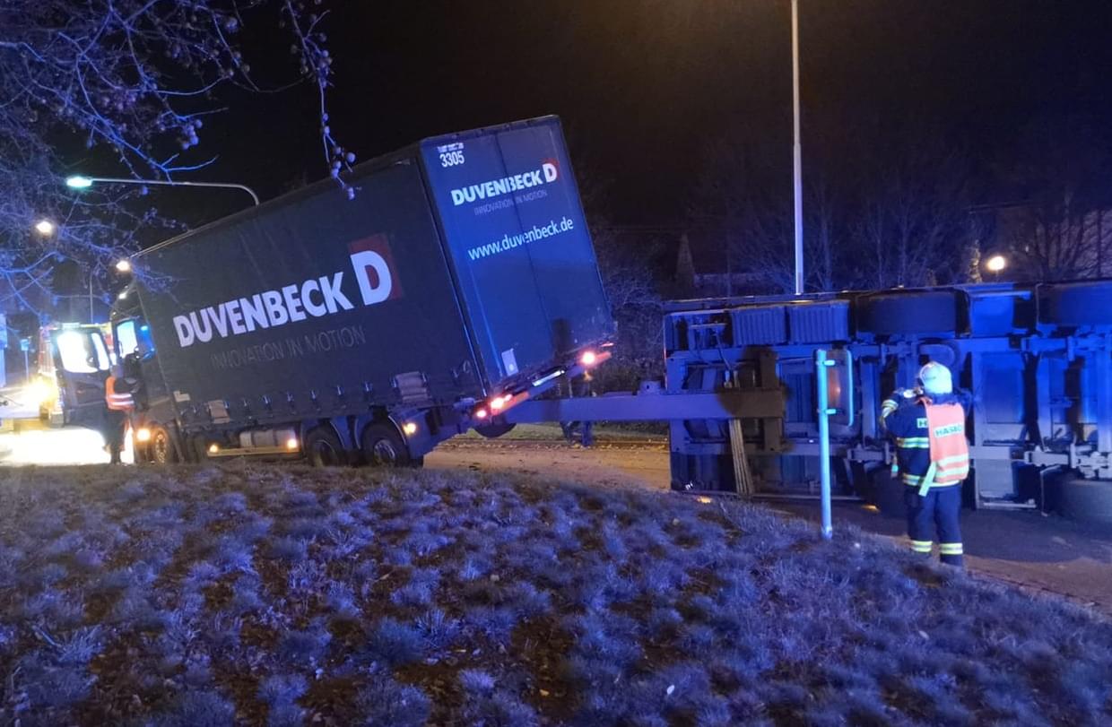 Na místo vyjeli hasiči i policisté, vyproštění vozu ze strany hasičů ale nebylo potřeba, zajistila si ho přepravní firma Duvenbeck, které vozidlo patří.
