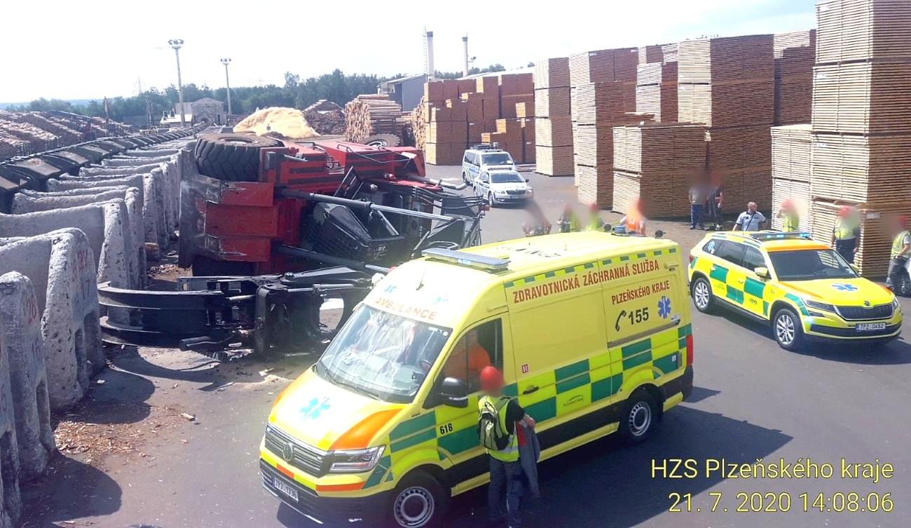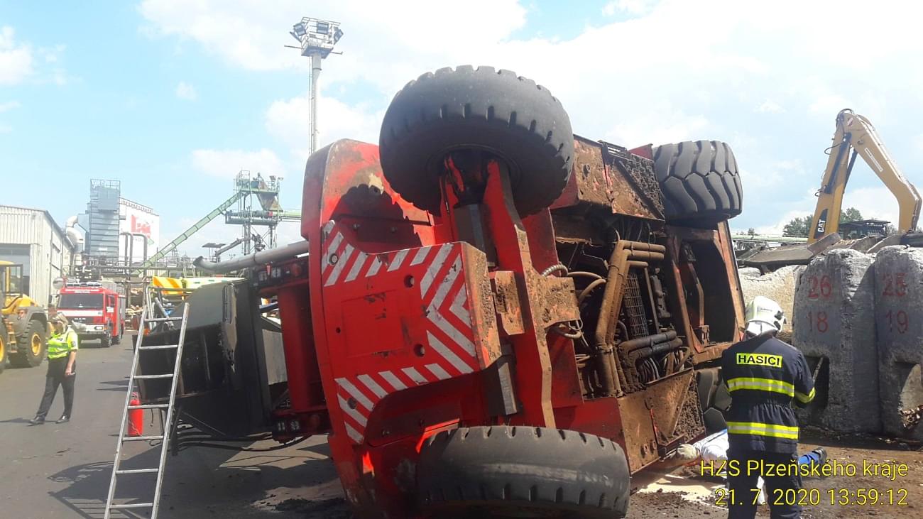 Dnes před druhou hodinou odpoledne došlo v areálu soukromé firmy v Planá k převrácení mnohatunového nakladače, který uvěznil muže narozeného v roce 1954.