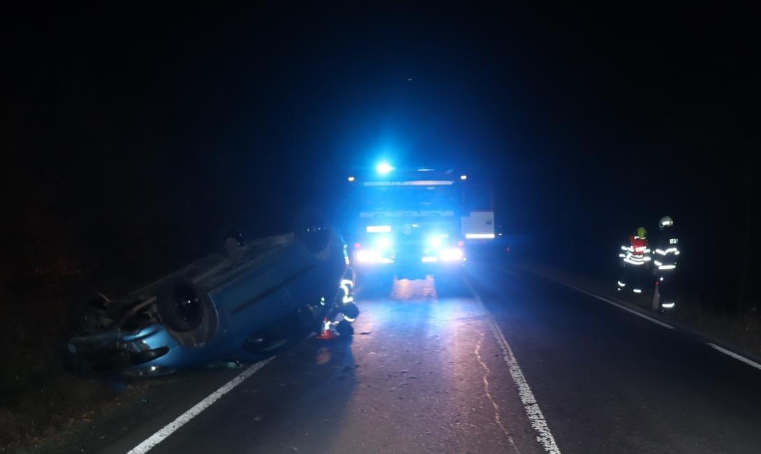 K havárii, při které řidič svůj vůz převrátil na střechu, došlo včera před pátou hodinou ráno na silnici mezi Klenčím pod Čerchovem a Lískovou.