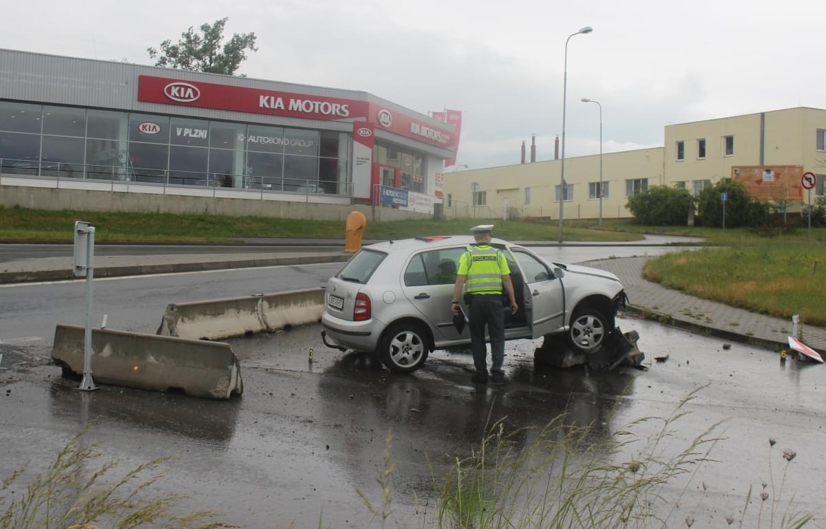 „Jednadvacetiletý řidič Škody Fabia jel od OC Olympia a na křižovatce ulic U Seřadiště a Koterovská projel betonovými citybloky. Při této nehodě utrpěla lehké zranění jeho jednadvacetiletá spolujezdkyně. Příčina nehody je v šetření, zkouška na alkohol byla negativní,“ uvedla k nehodě tisková mluvčí policie.