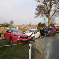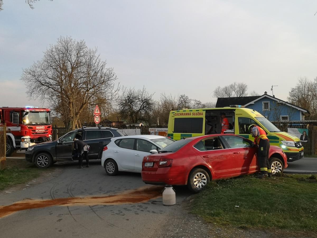 Podle informací přímo z místa zde řidička vozu Volkswagen jedoucí od Radčic se starší ženou a malým chlapečkem při odbočování vlevo nedala přednost protijedoucímu vozu Kia. Řidička jedoucí od Plzně na situaci zareagovala stržením řízení vpravo, čímž se vyhnula střetu s Volkswagenem, nepodařilo se jí ale zabránit střetu s vozem Škoda, jehož řidič vyjížděl z ulice Pod Vinicemi a dával oběma řidičkám přednost, a náraz pak ještě Škodu odhodil na dopravní značku.
