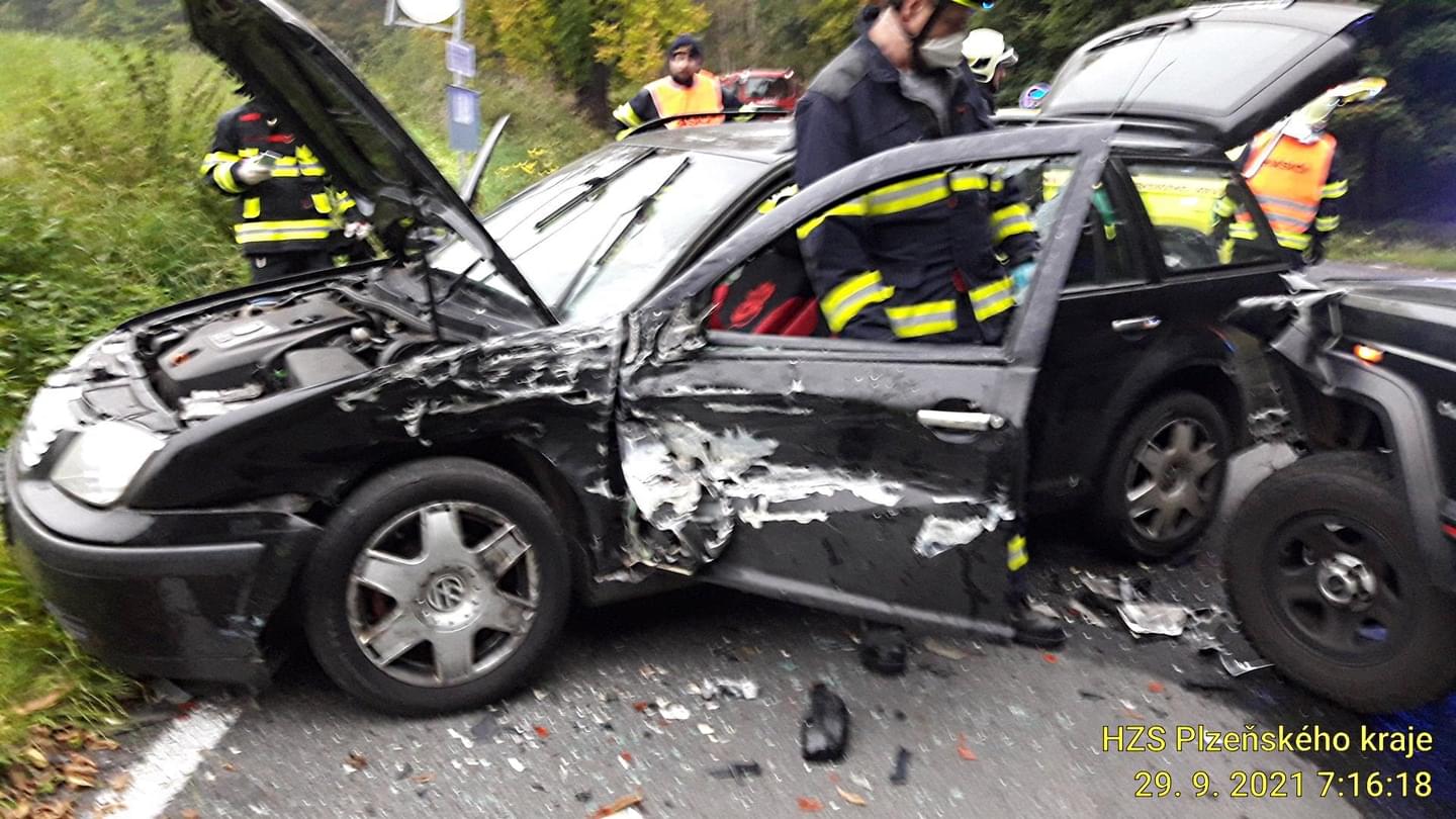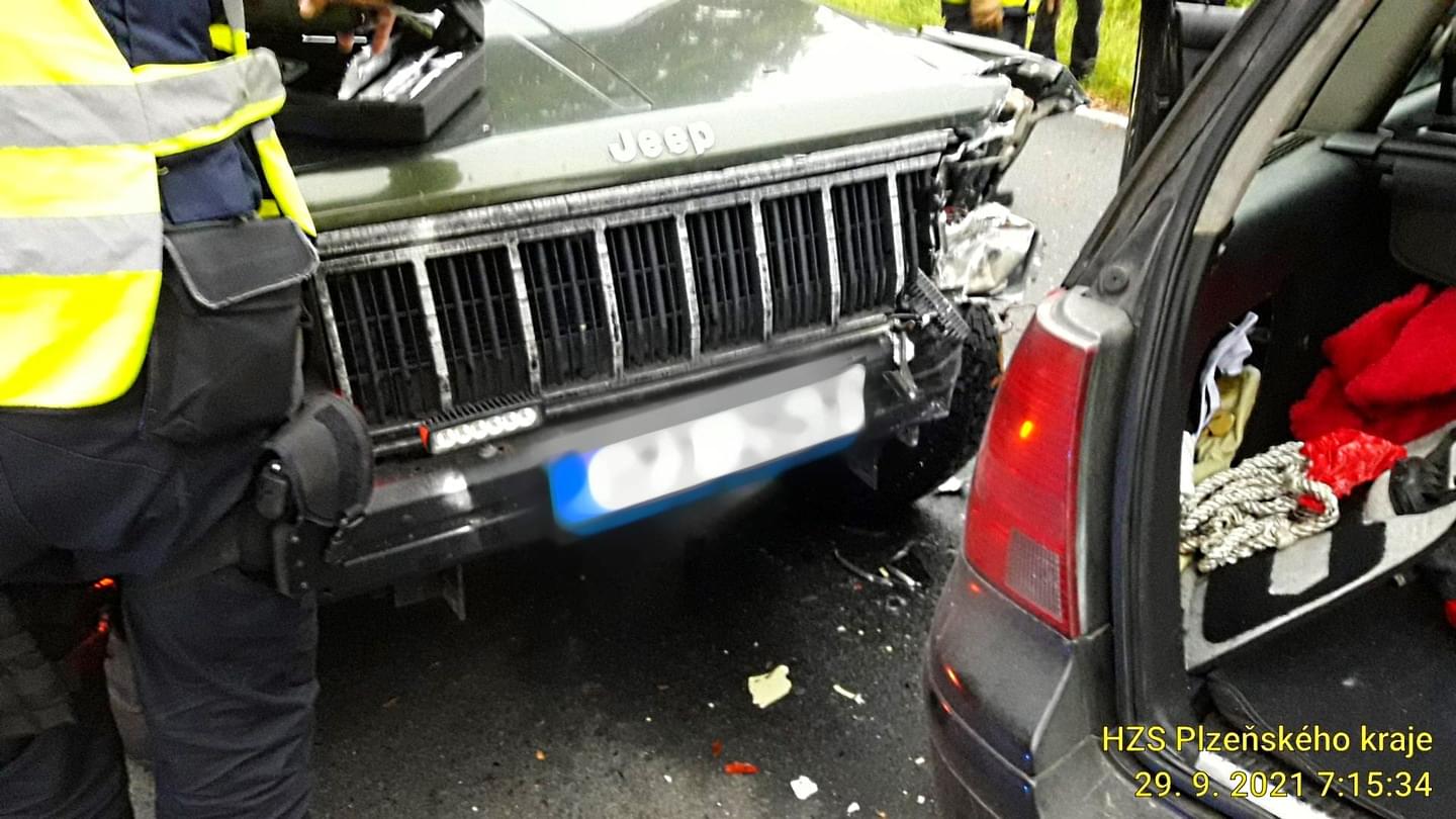 Před sedmou hodinou ráno došlo nedaleko Nezdic na Šumavě ke střetu dvou osobních vozů. "S vozidlem Volkswagen Bora jel dvacetiletý muž z obce na Sušicku ve směru od obce Ostružno na Nezdice na Šumavě. Na křižovatce nedal přednost v jízdě řidiči s vozidlem značky Jeep Cherokee a v prostoru křižovatky došlo ke střetu vozidel," popsala tisková mluvčí policie.