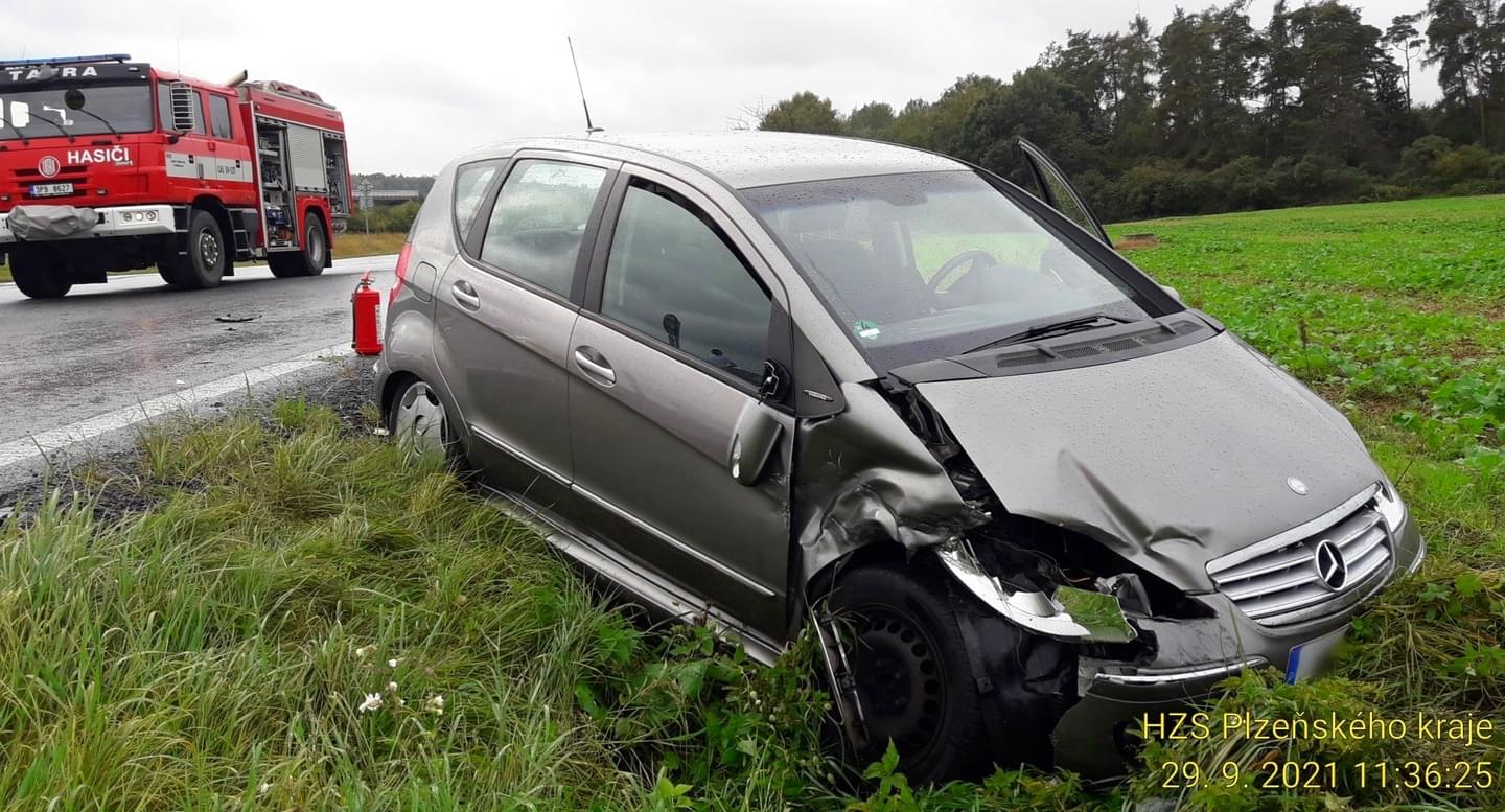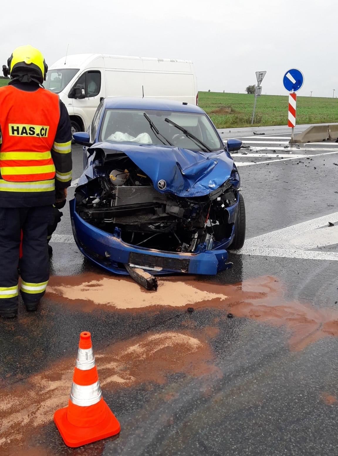 Po jedenácté hodině dopoledne došlo k dalšímu střetu vozů na sjezdu na Šlovice a Dobřany z přivaděče k Přešticím. I zde záchranáři ošetřili a do nemocnice transportovali jednoho zraněného, hasiči zajistili místo události, provedli protipožární opatření a likvidaci uniklých provozních kapalin. Policie okolnosti tohoto střetu šetří.