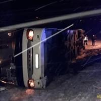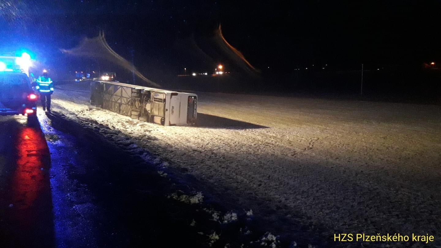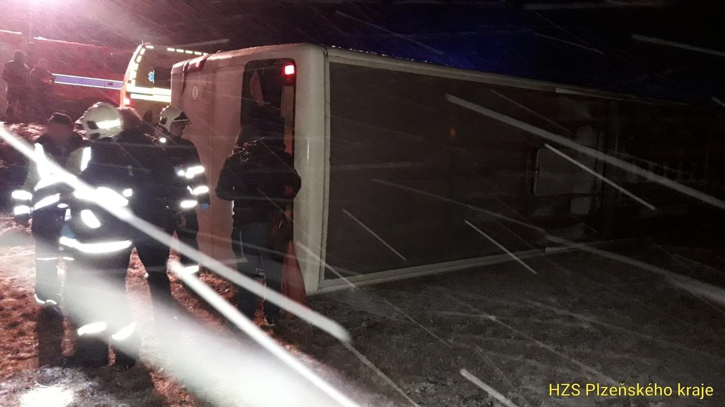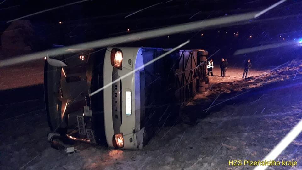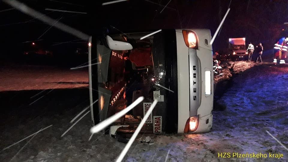 Dnes v půl šesté ráno došlo mezi Sušicí a Dobršínem k havárii autobusu, ve kterém cestovalo kromě řidiče 12 cestujících. Autobus zde vyjel na pravou krajnici a následně se převrátil mimo silnici.