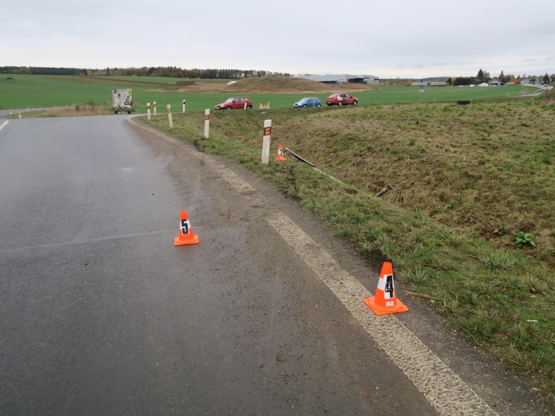 "Osmnáctiletý řidič motocyklu Yamaha TDR 125 jedoucí ve směru od Staňkova na Ohůčov nepřizpůsobil rychlost jízdy , při projíždění mírné levotočivé zatáčky dostal na mokrém povrchu komunikace s motocyklem smyk, vjel na pravý okraj komunikace a následně vyjel vpravo mimo komunikaci, kde narazil do dopravní značky Dej přednost v jízdě," popsala tisková mluvčí policie s tím, že mladík v silničním příkopu s motocyklem havaroval.