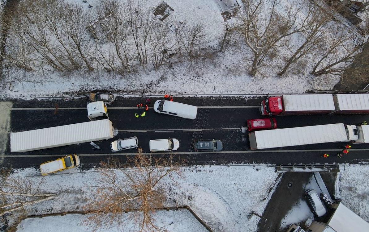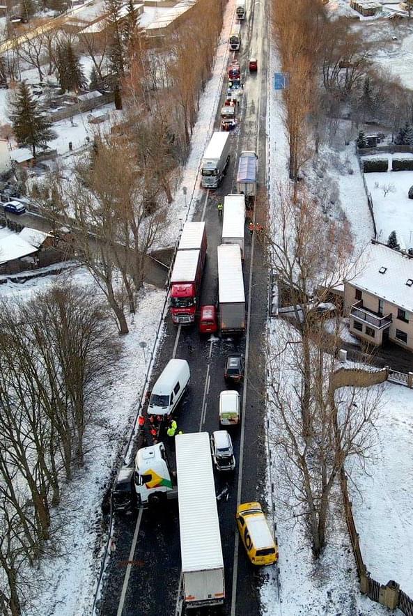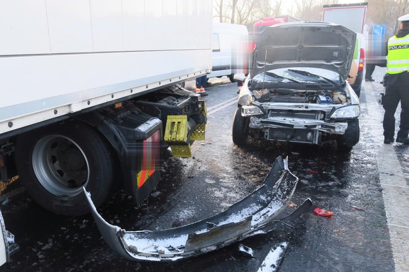 Do hromadné dopravní nehody se nakonec zapojilo deset osobních automobilů a tři kamiony, došlo ale naštěstí jen ke zranění tří lidí.