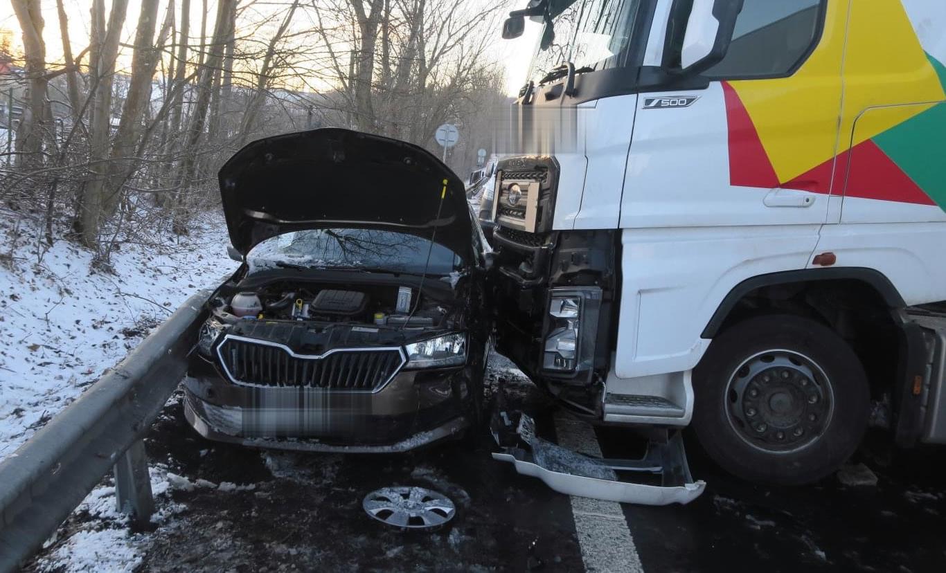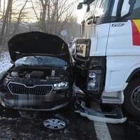 K nehodě došlo včera v půl páté odpoledne. Jak celá událost proběhla popsal tiskový mluvčí policie: "Třiapadesátiletý řidič kamionu značky Ford, který jel ve směru na Karlovy Vary, zřejmě nepřizpůsobil jízdu zasněžené vozovce a hustému sněžení, dostal smyk a přejel do protisměru, kde narazil do levé boční části osobního automobilu značky Škoda.