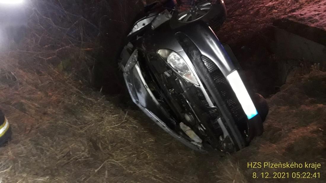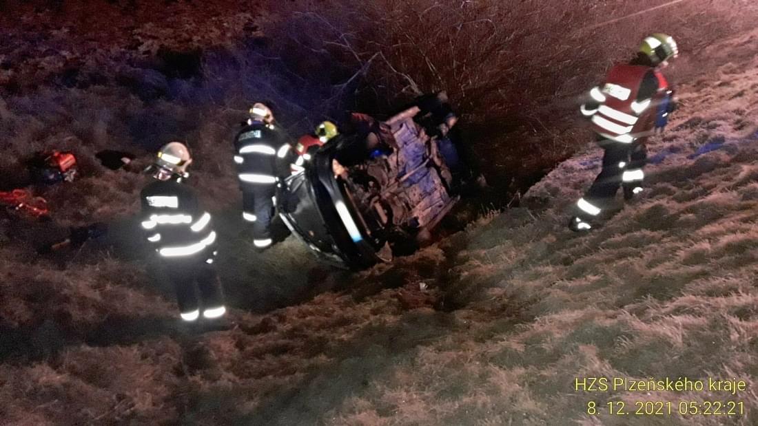 V noci na dnešek před pátou hodinou došlo na hlavním tahu z Plzně na Domažlice za Stodem ve směru na Holýšov k havárii osobního vozu Peugeot mimo silnici. Vozidlo po havárii zůstalo ležet v silničním příkopu na střeše a z místa bylo hlášeno zranění, k nehodě proto vyjely všechny záchranné složky.
