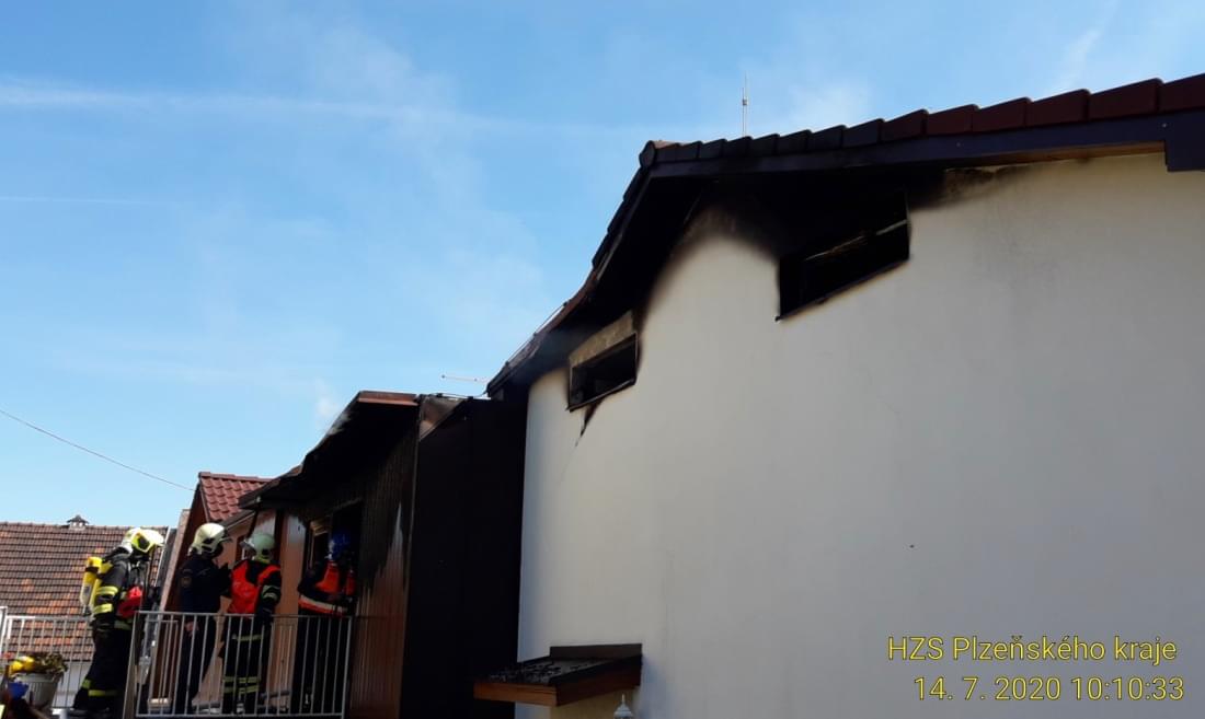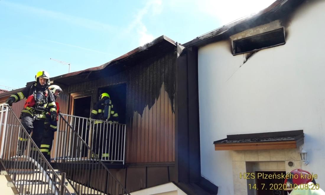 Pěj jednotek hasičů vyjíždělo dnes kolem půl desáté dopoledne k požáru rodinného domu v Žižkově ulici v Domažlicích.
