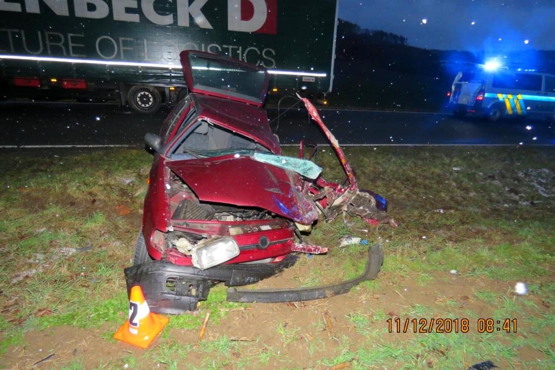 "Pětašedesátiletý řidič osobního vozidla Volkswagen Transporter jel s vozidlem ve směru jízdy od obce Hájek na obec Brůdek. Před vrcholem stoupání s vozidlem předjížděl nákladní vozidlo Mercedes s návěsem Schmitz. Při předjíždění neměl před sebe rozhled na takovou vzdálenost, která byla nutná k bezpečnému předjetí a ohrozil protijedoucí čtyřicetiletou řidičku, která řídila osobní vozidlo Škoda Felicia ve směru jízdy od obce Brůdek. Následně došlo ke střetu vozidla Volkswagen s vozidlem Škoda," popsala tisková mluvčí policie.