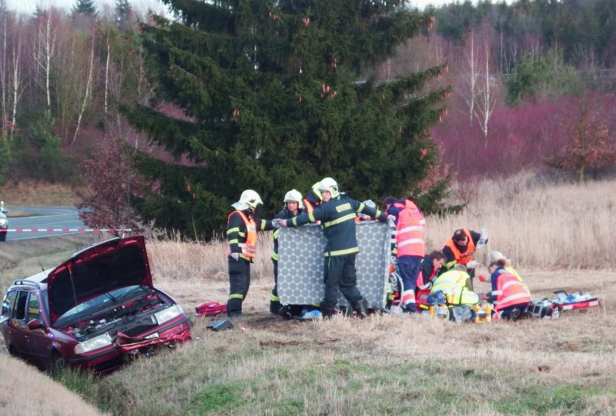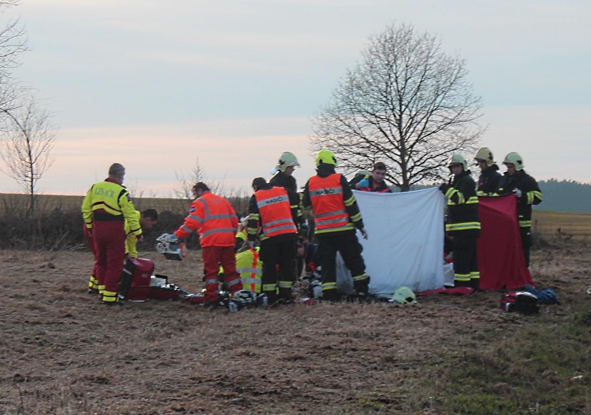 Na místě jsme byli svědky resuscitace dvou osob z osobního vozu, na které se podíleli nejen záchranáři a posádka vrtulníku, ale i hasiči.