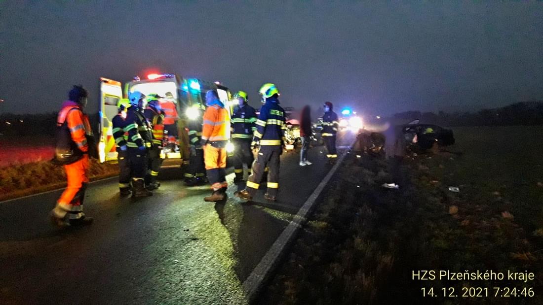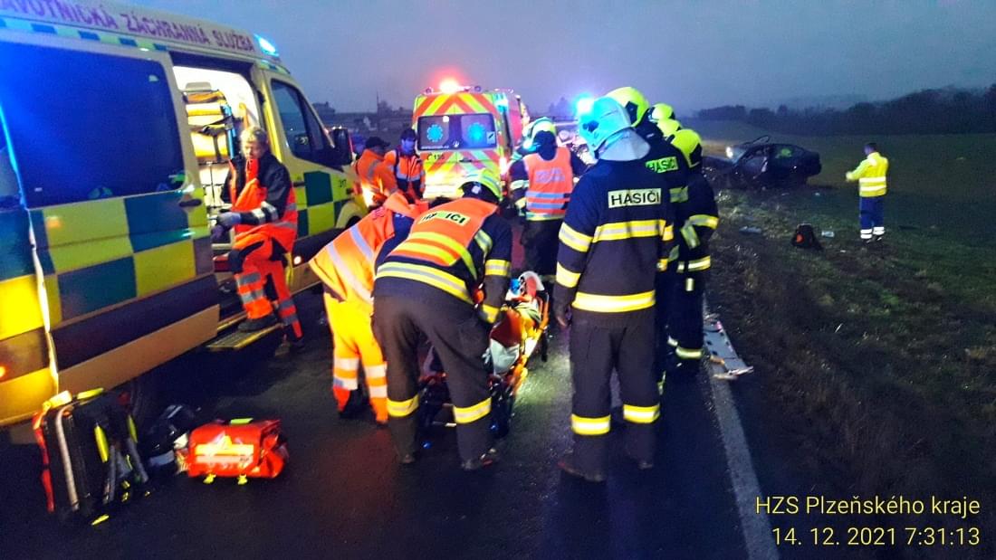 Z místa bylo hlášeno několik zraněných osob a k nehodě proto vyjely všechny záchranné složky. Silnice č. 193 je uzavřena, je prováděn odklon dopravy. Hasiči museli několik zraněných z vozů vyprostit a asistovat záchranářům při jejich ošetřování. "Z místa transportujeme pozemní cestou celkem sedm pacientů. Muže narozené v letech 1995 a 1948 i třiačtyřicetiletou ženu na Emergency Fakultní nemocnice Lochotín se středně těžkým zraněním vzniklým závažným mechanismem nehody. Další čtyři osoby po základním vyšetření ošetří Stodská nemocnice," uvedli záchranáři.