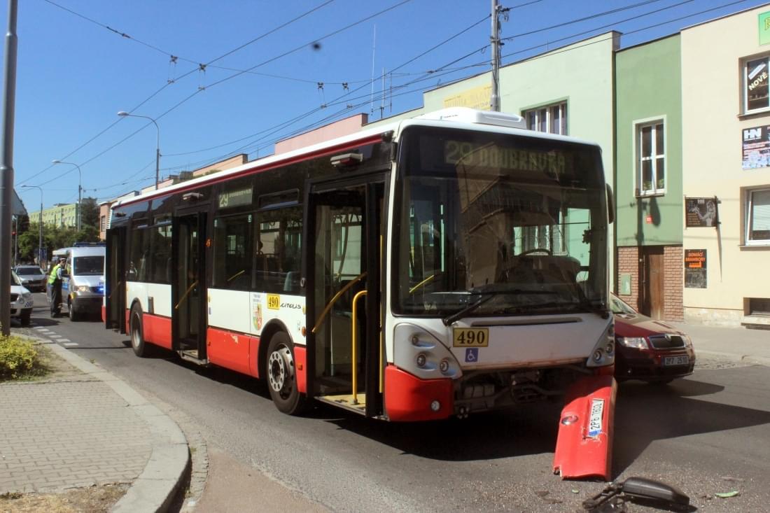 stojící autobus a následně se přední částí vozu střetl se zadní částí