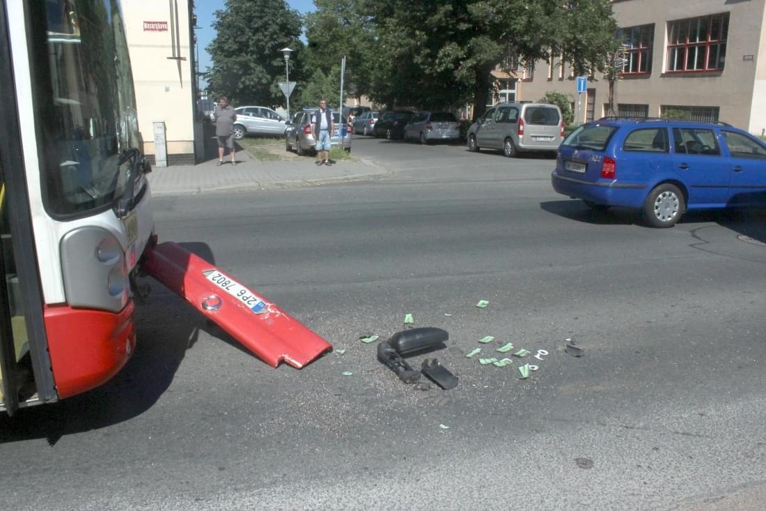 autobusu MHD vyjel z autobusové zastávky, koukal do zpětného zrcátka, přehlédl před ním