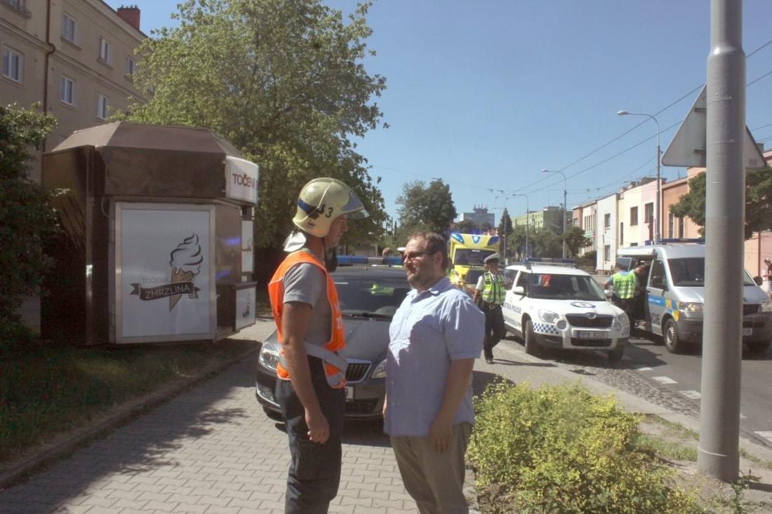 Přímý svědek nehody nám řekl: "U toho střetu jsem byl, byla tam moje mladší kamarádka, která se bouchla do hlavy, potom dvě menší děti s maminkou a starší pár. Muž utrpěl povrchové poranění na pravé ruce a brýle mu rozrazily hlavu. Paní utrpěla poranění na ruce. Hned po nehodě jsem přeběhl ulici, začal jim pomáhat a dal jim napít."