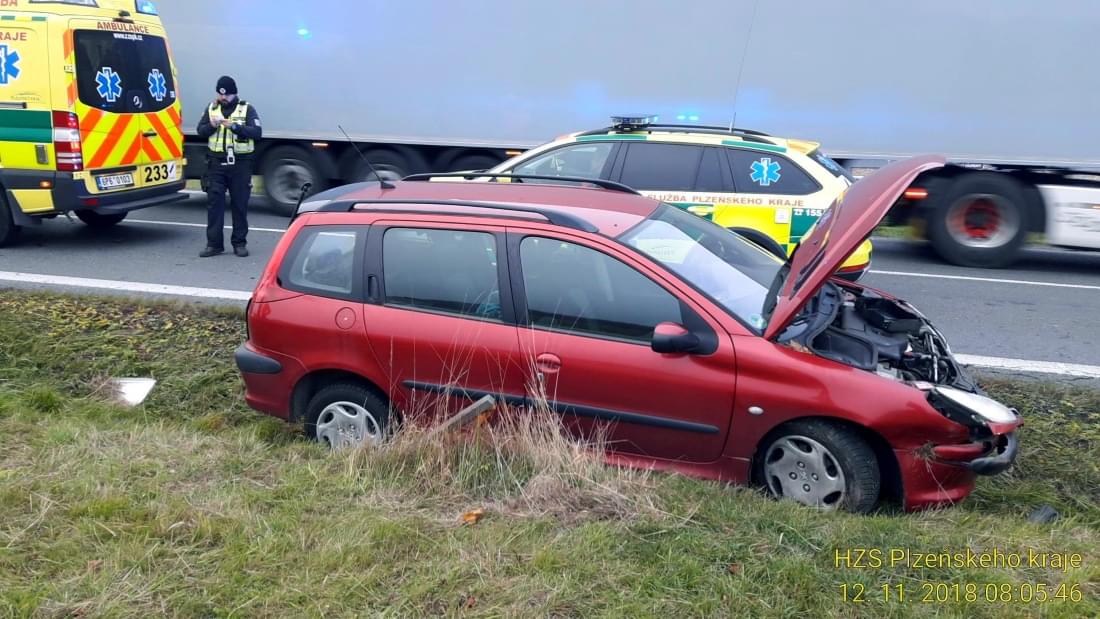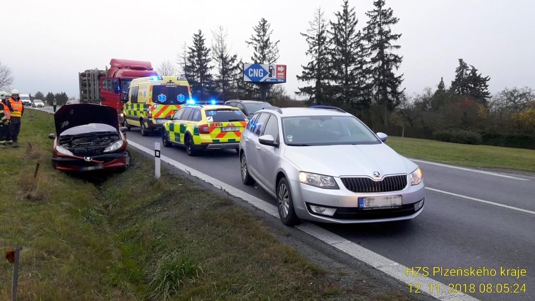 Dnes před osmou hodinou ráno došlo u Losiné ve směru na Plzeň ke střetu dvou osobních vozů s kamionem.