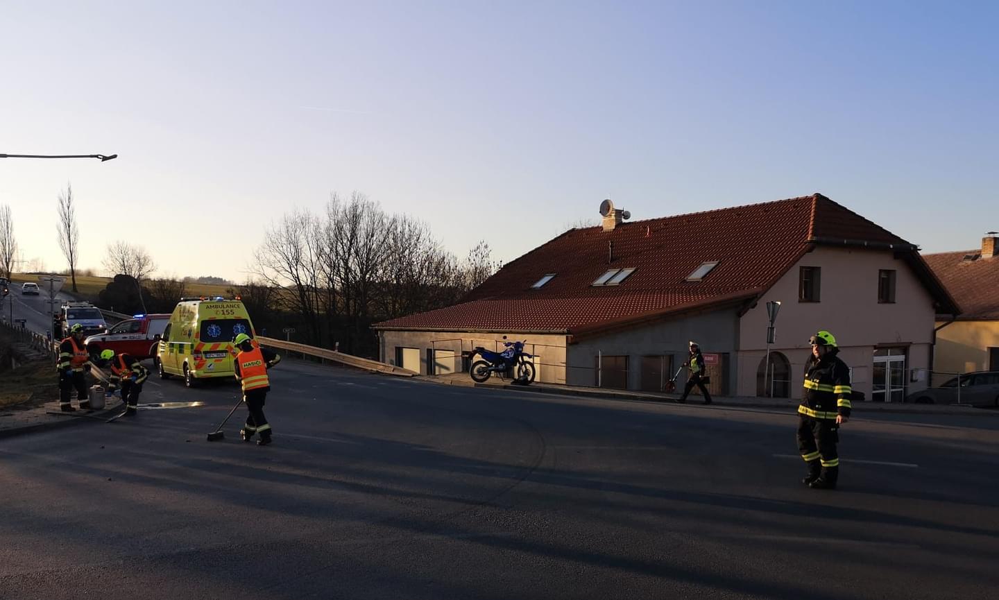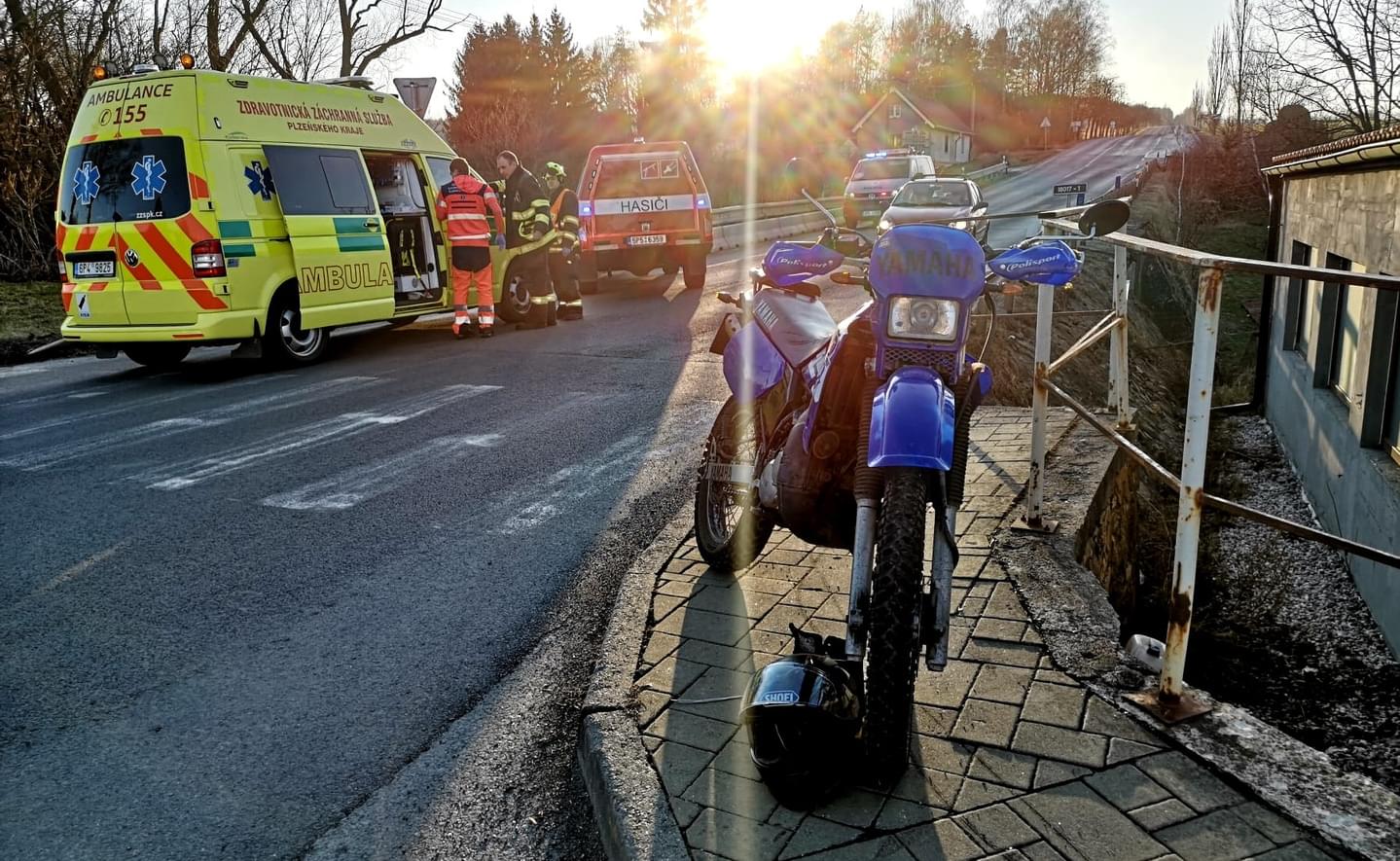 Dnes kolem půl páté odpoledne došlo na křižovatce v Ejpovicích k dopravní nehodě, při které se střetl vůz Volkswagen Golf s jezdcem na motocyklu Yamaha.