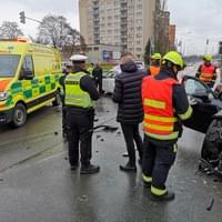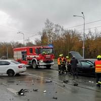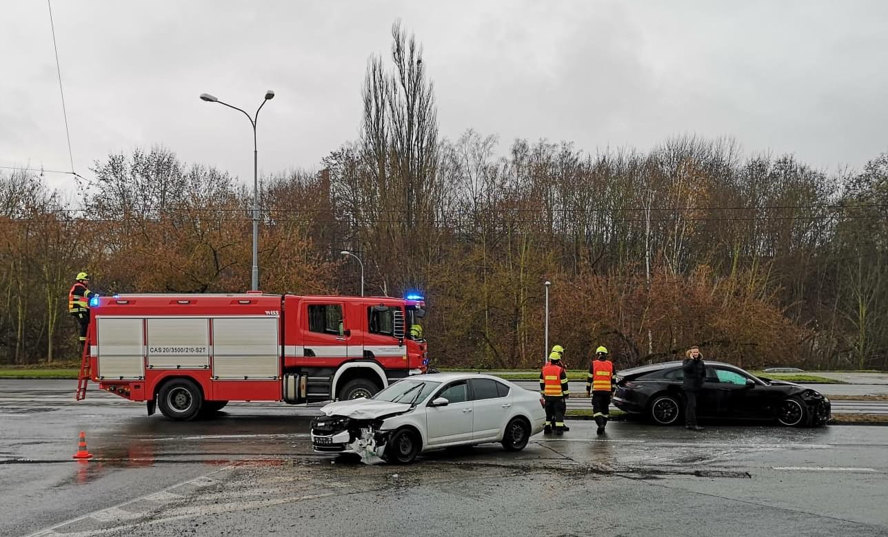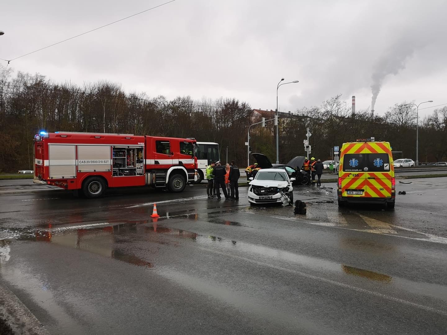 Dnes těsně před jednou hodinou odpoledne došlo na křižovatce Vejprnické a Křimické ulice v Plzni ke střetu dvou osobních vozů.