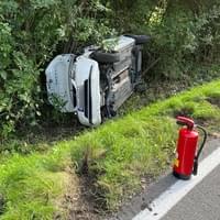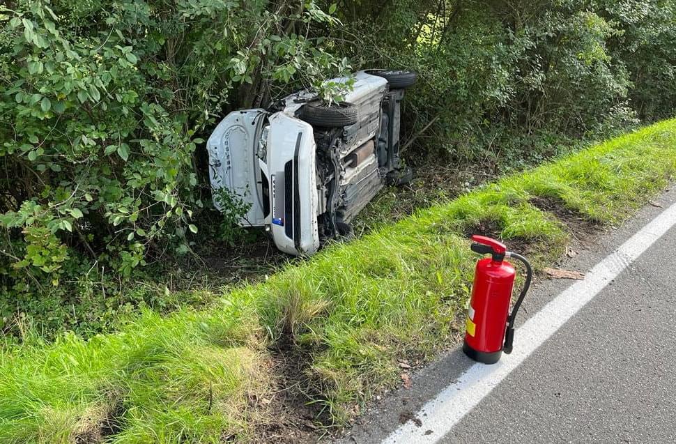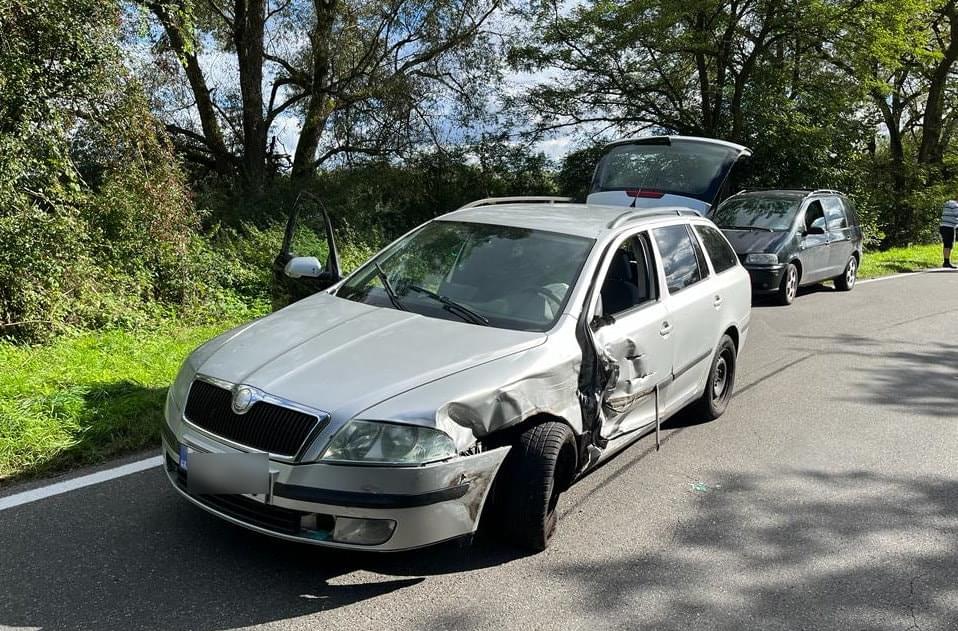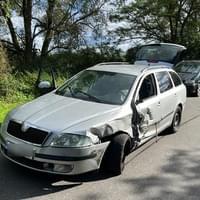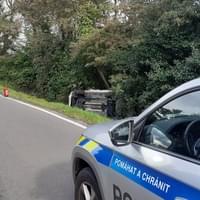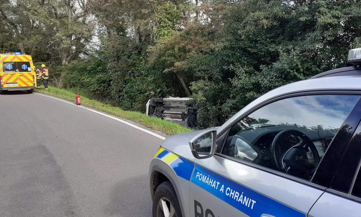 Včera před půl čtvrtou odpoledne došlo mezi Dobřany a Valchou u lesoparku Martinská stěna k dopravní nehodě, při které se střetly dva osobní vozy a jeden z nich byl potéodražen do silničního příkopu, kde zůstal převrácený na boku.